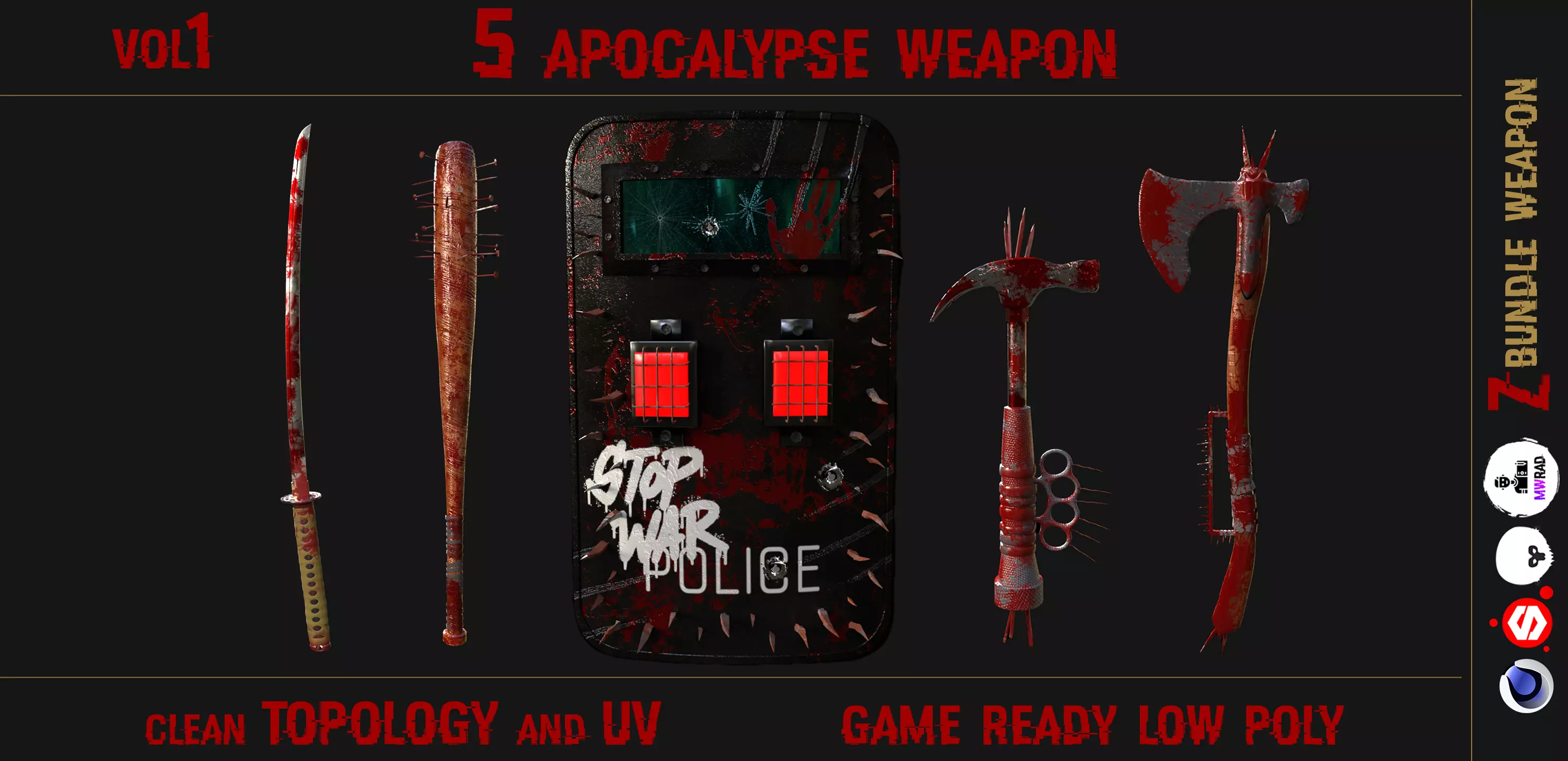 5 apocalypse weapon bundle Vol 1 https://www.artstation.com/artwork/LeomGv (marmoset viewer)