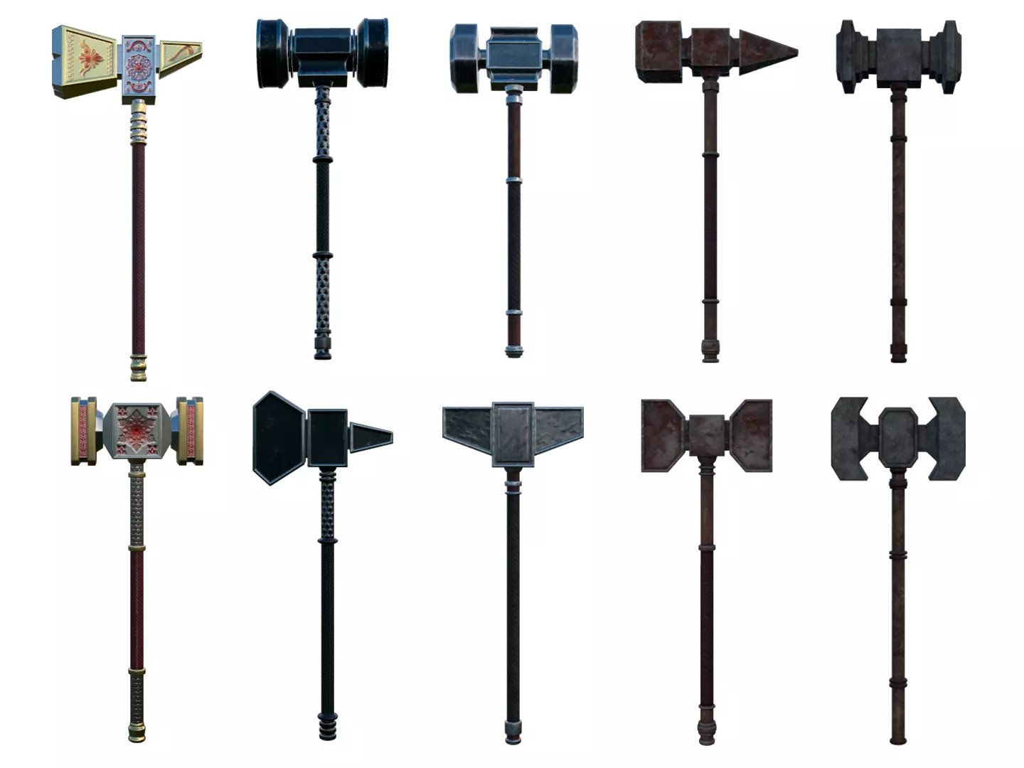 50 War hammers pack Low-poly 3D model