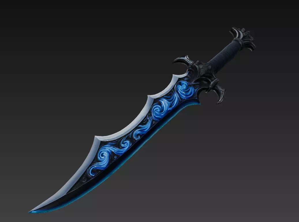 The Abyssal Tideblade is a low poly stylized fantasy sword infused with oceanic energy and deep-sea mystery.Its swirling sapphire engravings and curved blade design create a sense of motion, as if the weapon itself channels the power of the tides.