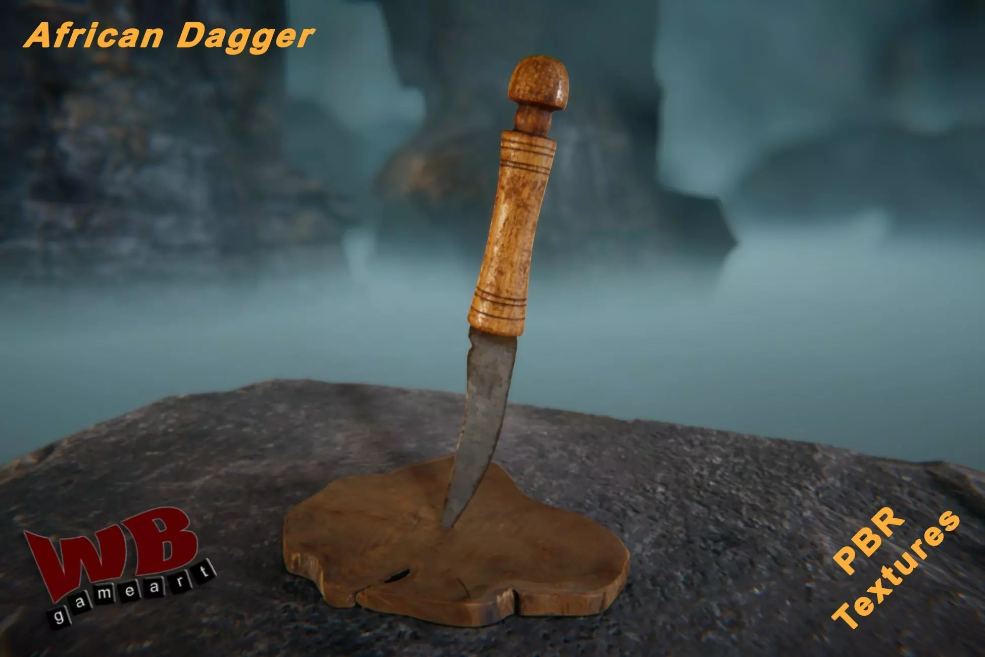 Inspired by traditional African weaponry, this stylized piece features a weathered curved blade and a carved wooden handle, rich with character and history. Ideal for use in tribal, historical, survival, or fantasy settings, it fits seamlessly into scenes involving ancient rituals, close-combat warriors, or artifact collections.