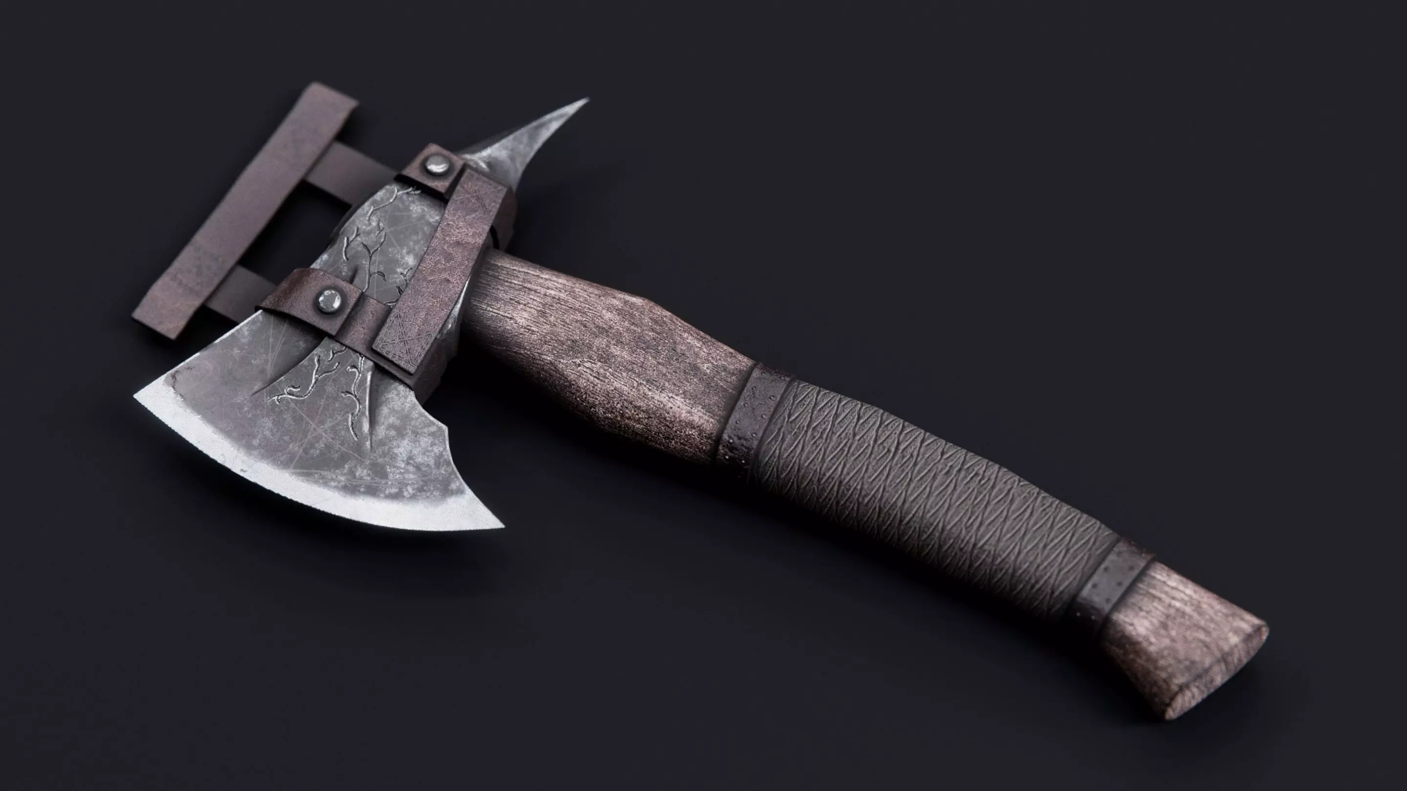 this axe was modeled with the subdivision modeling workflow. it has a baked PBR material with 4K textures. it has only 1 material wich includes the axe and scabbard. the scabbard is a seperate object and can easily be alligned with the axe. all textures are packed into the .blend formats and can be downloaded manually for use with the .obj and .fbx format.