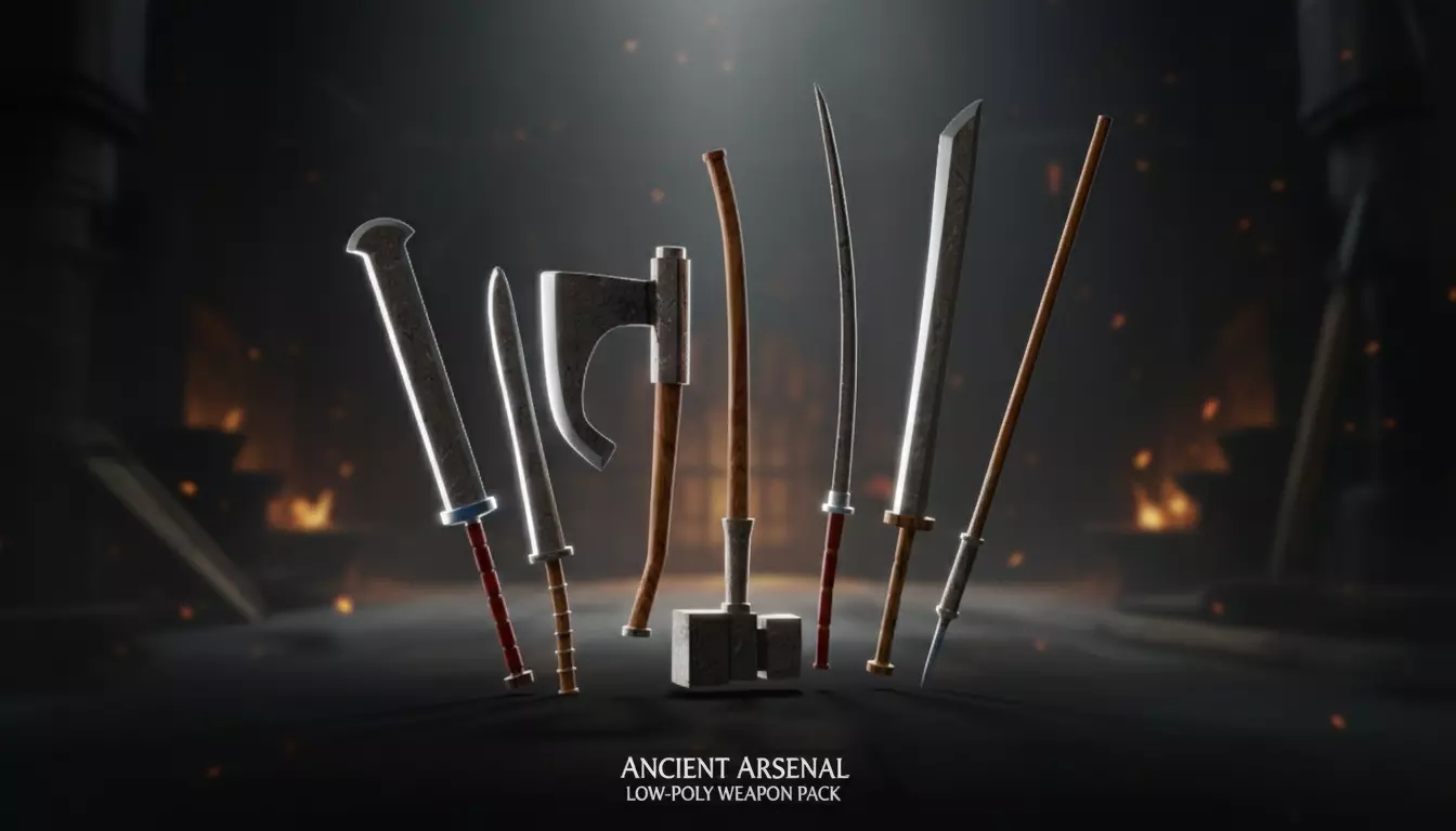 This Ancient Melee Weapon Pack features a versatile collection of six low-poly, high-fidelity 3D models designed for seamless integration into modern game engines or cinematic renders. Crafted with a focus on both historical inspiration and game-ready functionality, these assets offer a balance between performance and visual detail.