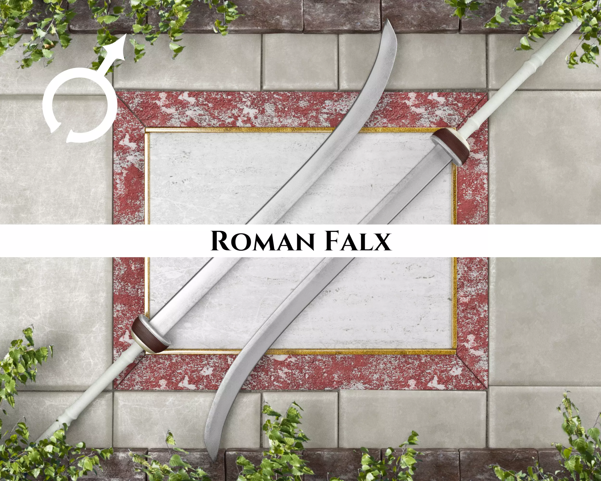 This model is part of the Roman Weapons set. Weapons in this particular style feature ivory handles held in a dark wood. A large pommel caps the hilt and counterbalances the thick blade. While many of the weapons in this set were used by the Roman military, other weapons only saw use in Roman gladiator arenas.
