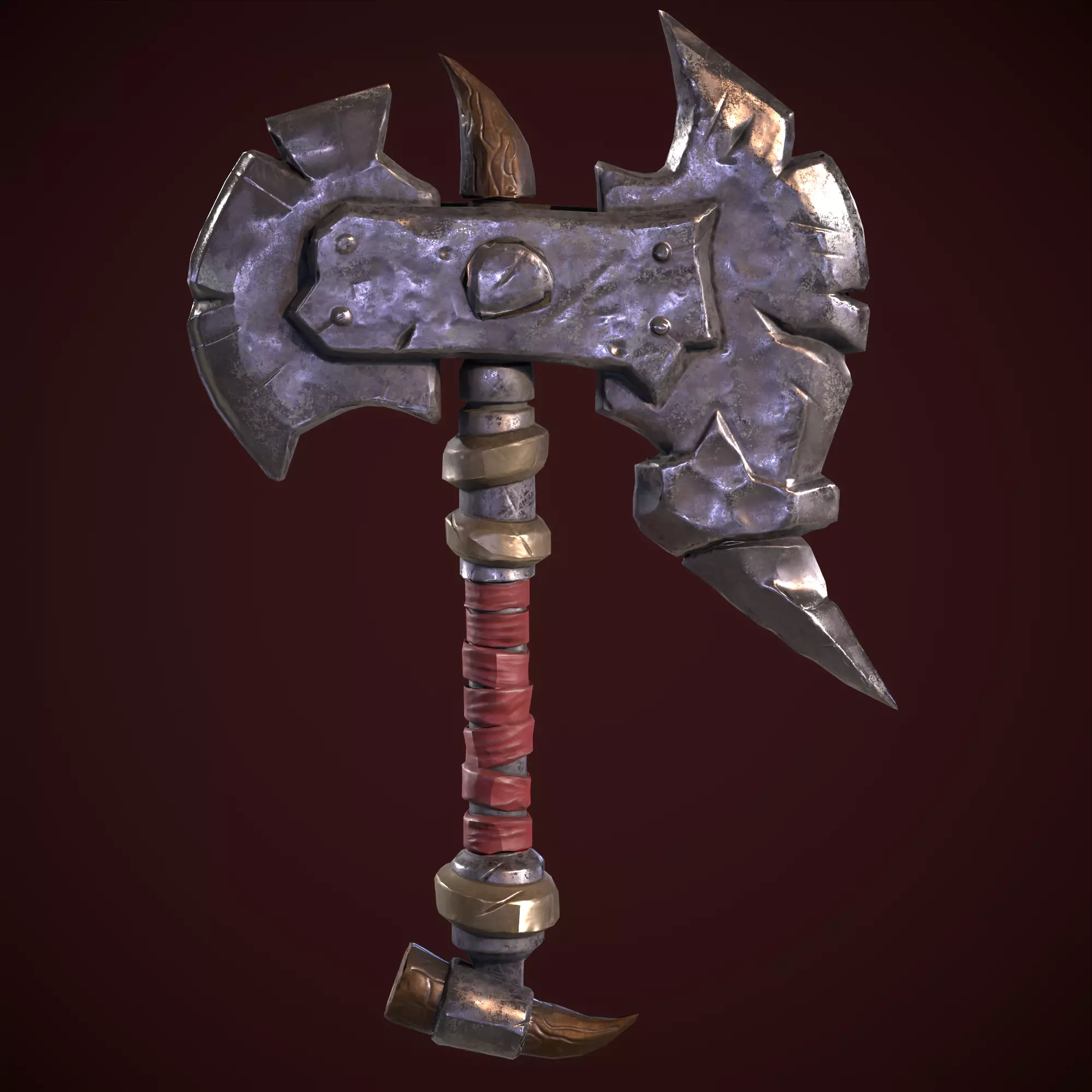 3DModels - Low poly axe, fighting axe, battle axe. magical axe, spell axe Textures - High qulity fantasy texture diffuse. Available In - Fbx,ObjOptimized For Real time rendering and games.PBR Textures - Diffuse, Metallic, Roughness and Normal map.Triangles: 5.9KVertices: 3K#hope you enjoy it#