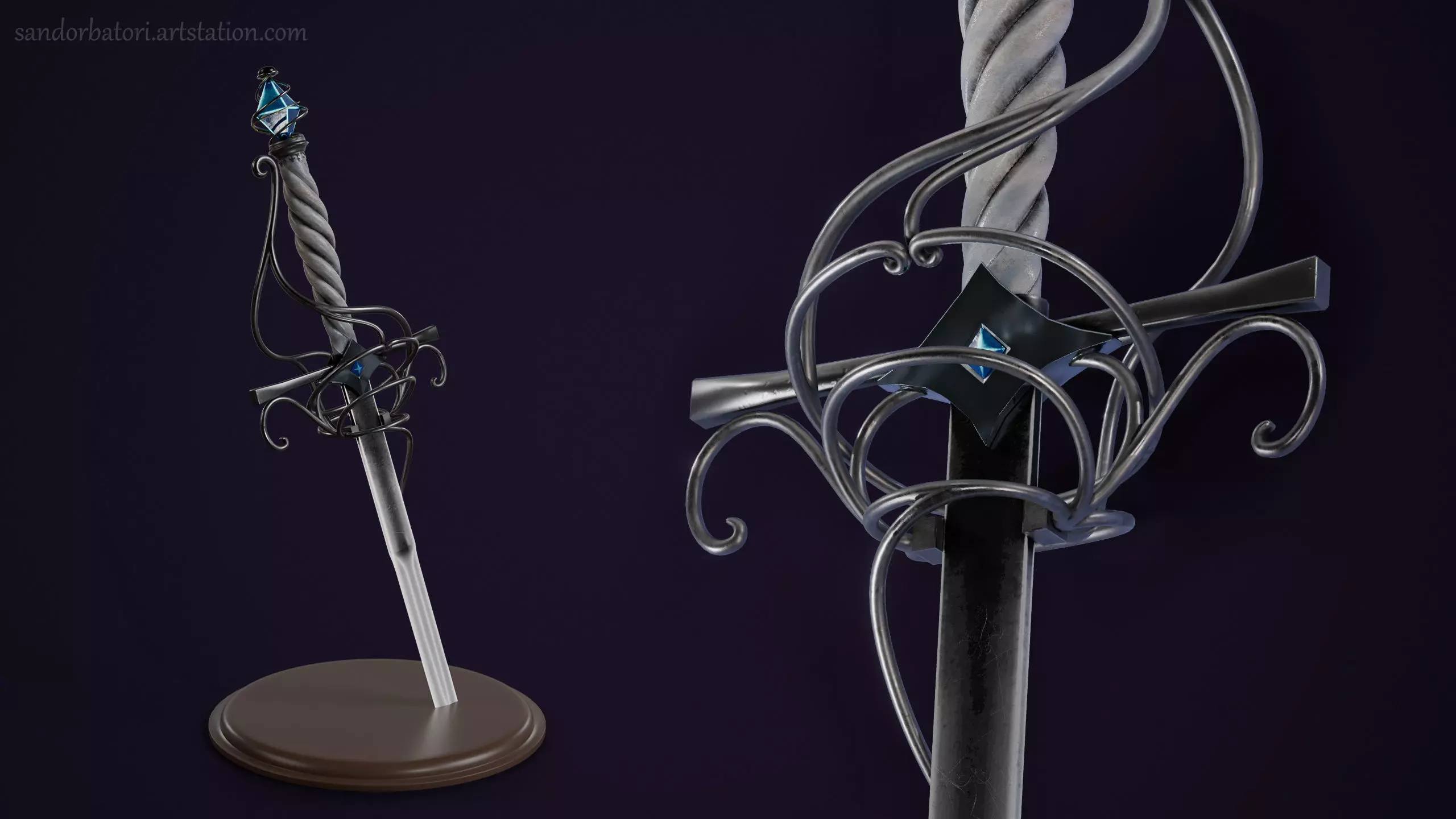 This is a game-ready fantasy weapon model with a nature-inspired design, featuring organic, vine-like elements and an emissive crystal pommel.The asset was created with clean topology and optimized geometry, suitable for real-time use, while also supporting higher-quality subdivision for close-up renders.