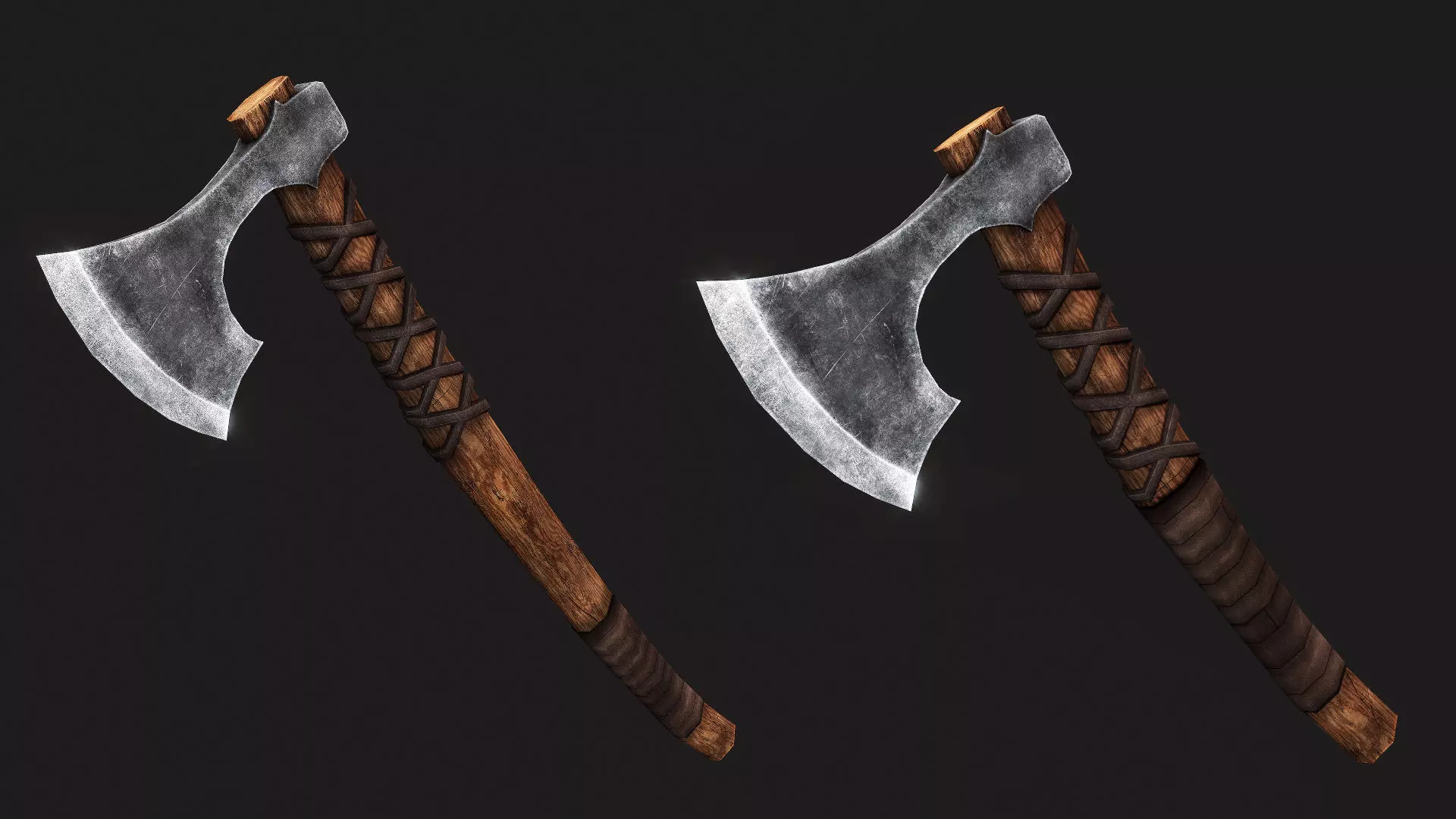 Two very Detailed Baltic viking battle axes, perfect for games, such as survival, medieval, fantasy, building/repairing tool or as a weapon.
