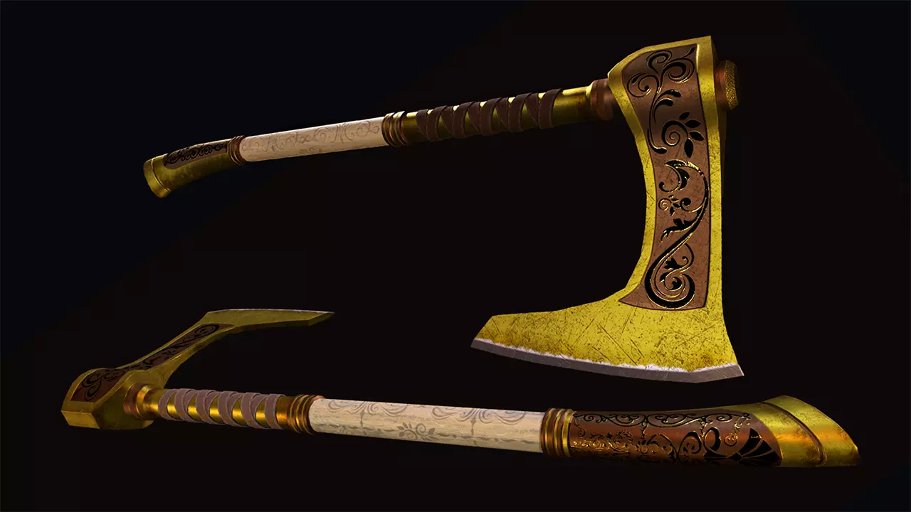 3D low poly model of a Battle Axe, with a resolution of 4096x4096 PBR textures: