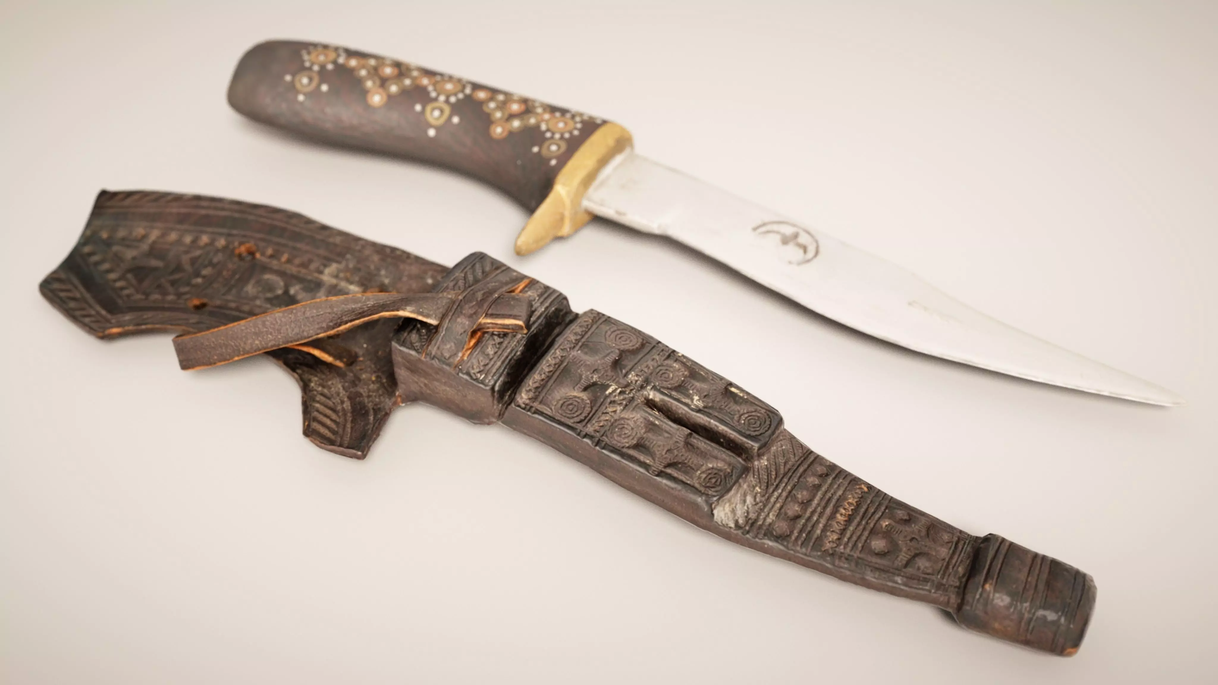 Black Decorated Knife and Brown Leather Pouch Low-poly 3D model