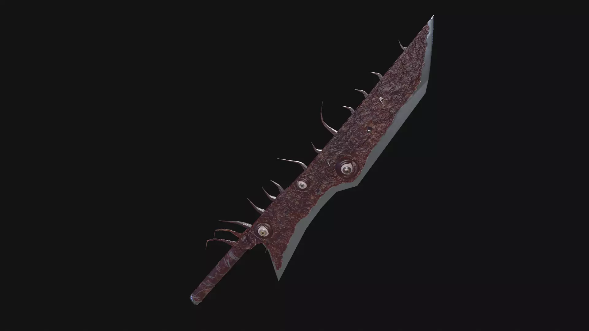 Low poly two-handed sword with eyes and flesh on the blade