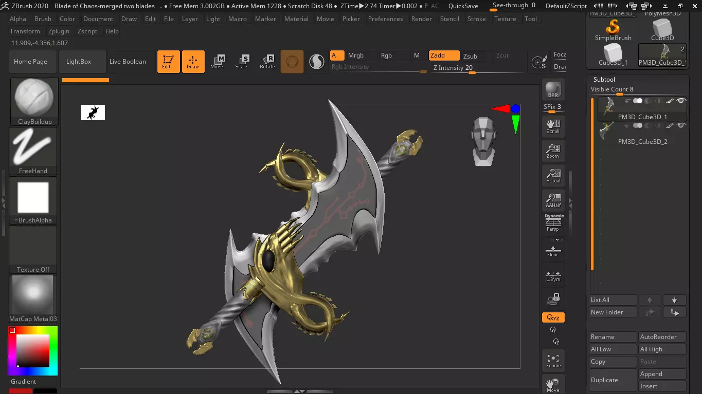 The model has material settings that define how surfaces look (color, shine, transparency, etc.).