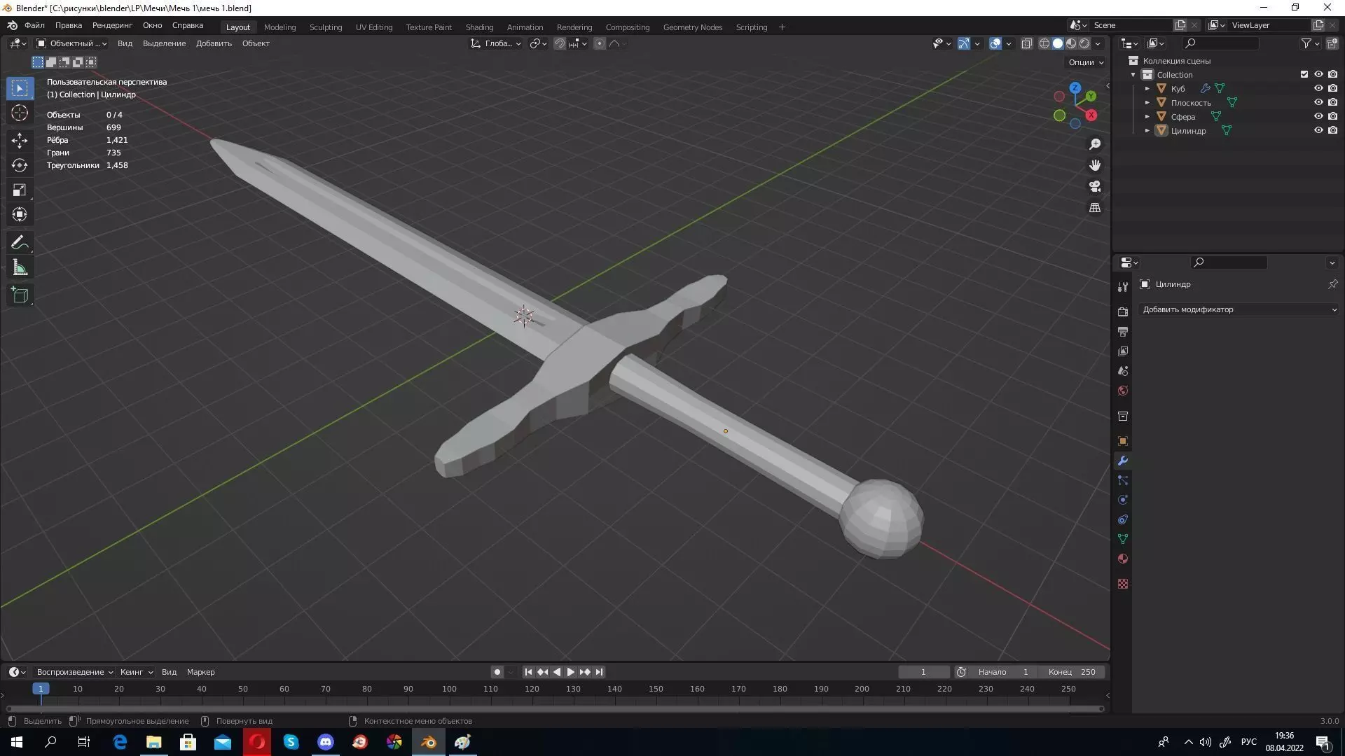 The total number of polygons (flat shapes) that make up the 3D model.