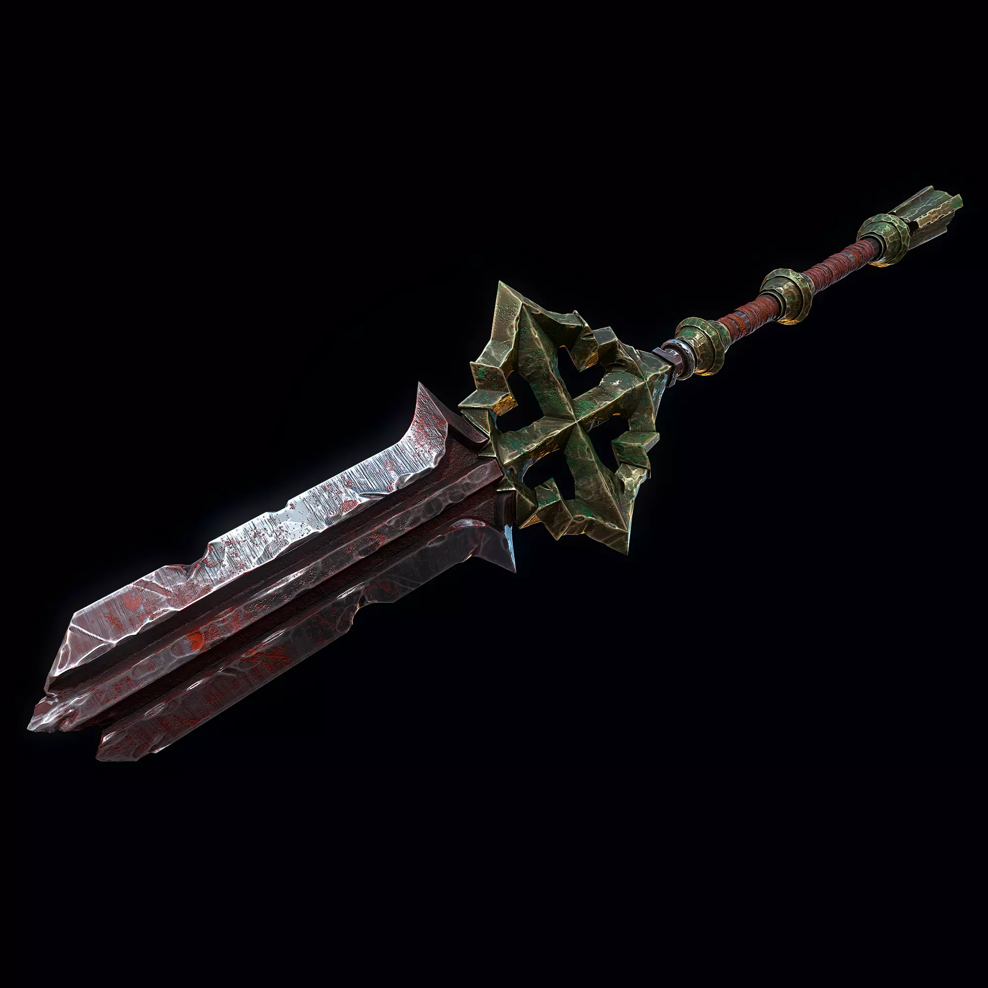 Low-poly 3D model of the Broken Hero Sword doesn't contain any n-gons and has optimal topology. The archive includes such 2K textures: base color map, metalness map, normal map (OpenGL), and roughness map. Images and video were rendered in Marmoset.