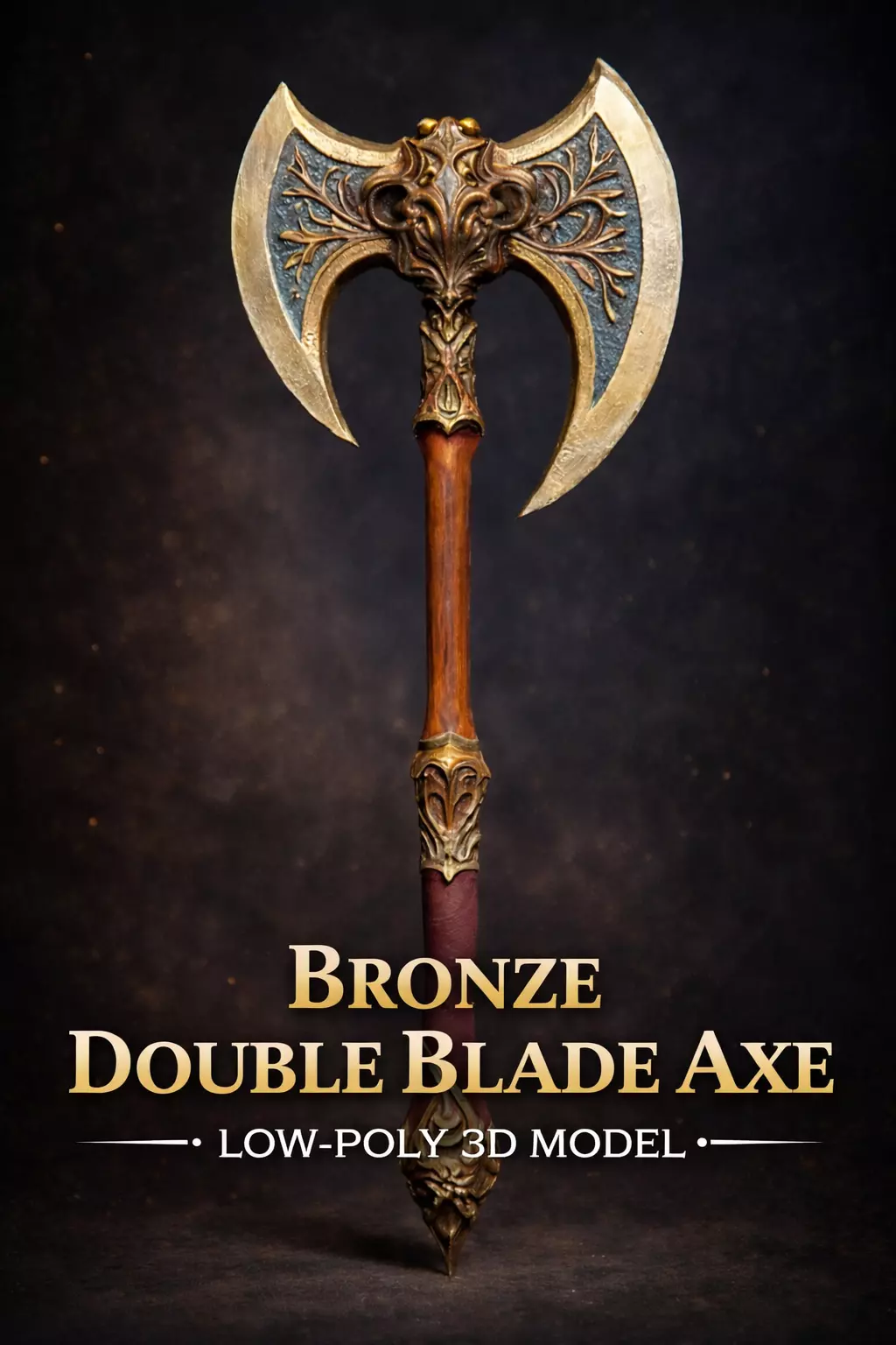 Bronze Double Blade Axe is a stylized fantasy weapon featuring symmetrical curved blades with intricate ornamental engravings and a detailed bronze head. The elegant double-blade silhouette combined with engraved metallic patterns and a wooden handle gives the weapon a strong medieval-fantasy aesthetic.This model is designed as a game-ready asset, optimized with efficient topology and baked high-poly details. The model uses PBR textures created in Substance Painter, allowing it to work well in modern real-time engines like Unreal Engine and Unity.Perfect for fantasy RPG games, cinematic scenes, medieval environments, or weapon collections.
