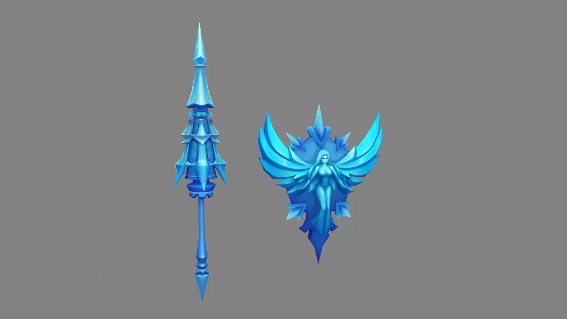 Cartoon Angel goddess Spear Shield Weapon Low-poly 3D model
