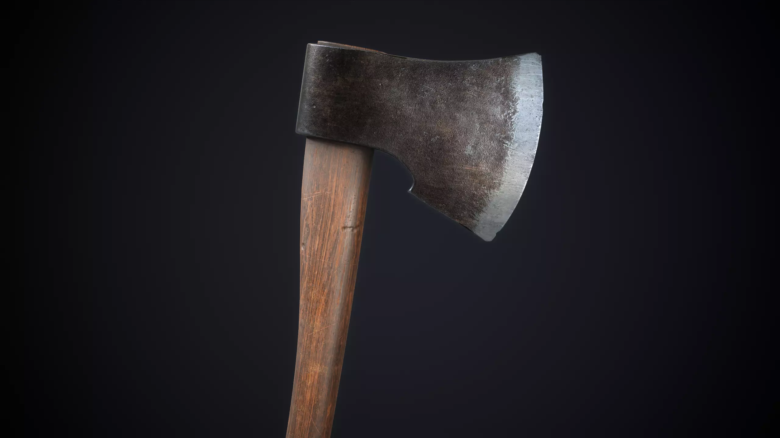 This model features an oval wooden handle and a weathered steel head with a sharp edge.