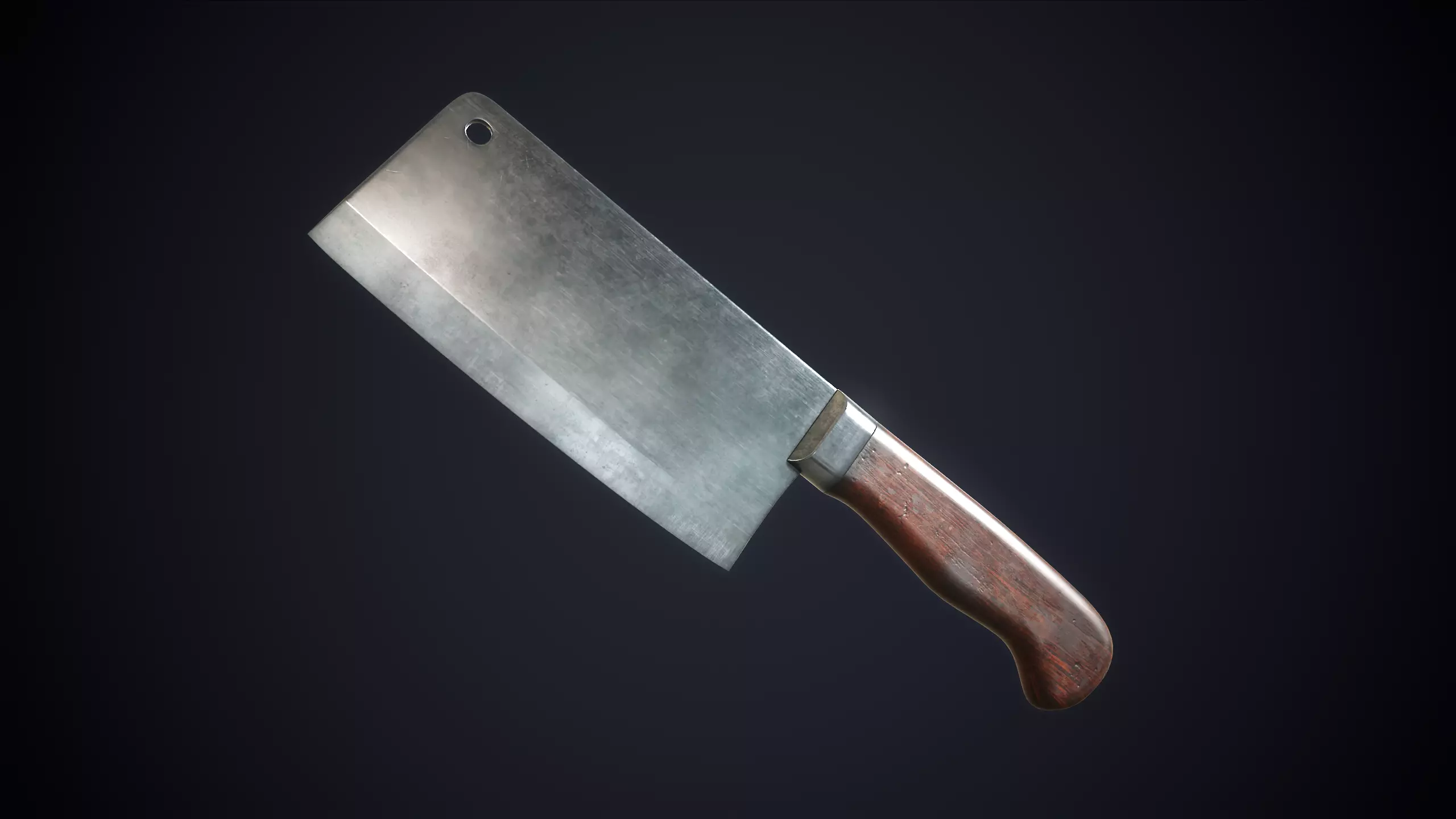 This is a classic heavy cleaver with a worn blade and a solid wooden handle.