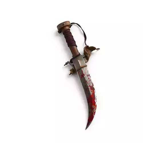 This highly detailed 3D model represents a combat-worn, bloody curved dagger, perfect for adding a gritty and realistic edge to your digital projects. The model features a distinctive curved blade, heavily stained with realistic blood splatter textures, suggesting a history of intense use. The hilt is meticulously crafted with a fabric wrap and rugged metal accents, enhancing its post-apocalyptic or dark fantasy aesthetic. This versatile asset is ideal for various usage scenarios, including immersive game development in genres such as survival horror, dark fantasy, or post-apocalyptic settings. It also excels in architectural visualization for themed environments, augmented reality (AR) and virtual reality (VR) applications, and creating striking digital art or cinematic renders. The model is optimized for real-time applications, ensuring smooth performance in game engines while maintaining high visual fidelity. It boasts clean topology and is fully UV unwrapped, making texture application seamless and efficient. Provided with high-quality PBR (Physically Based Rendering) textures, it delivers stunning realism under diverse lighting conditions. Supported file formats include GLB, OBJ, STL, ABC, DAE, FBX, USD, and PLY, ensuring broad compatibility across various 3D software and platforms. Whether for a main character's weapon, environmental detail, or a compelling prop, this bloody dagger is ready to be integrated into your next project.