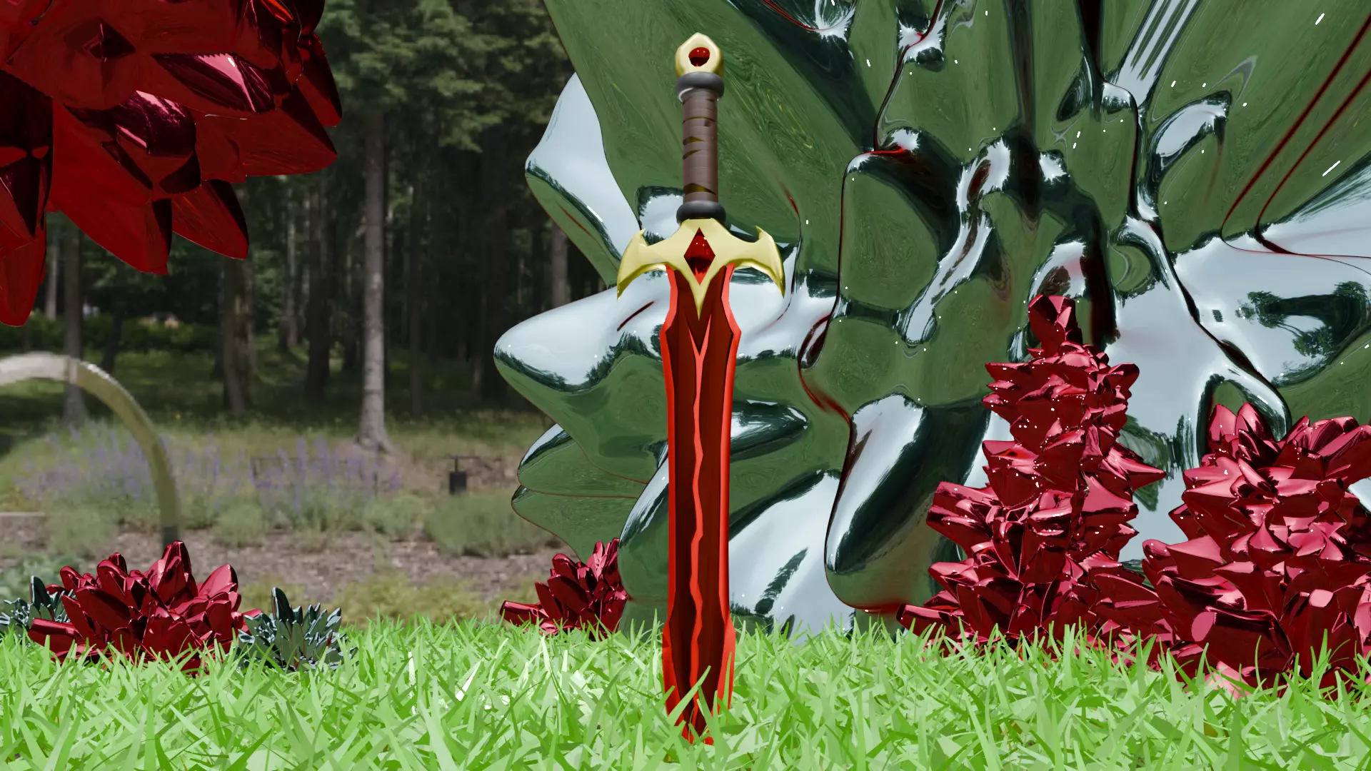 The crimson Monarch is a high-quality Stylized fantasy sword, designed for games ,cinematics, scenes, and hero props. The blade features an aggressive silhouette with deep red tones and a monarch-inspired structure. the golden hilt, wrapped with detailed leather, gives the weapona royal yet deadly presence.