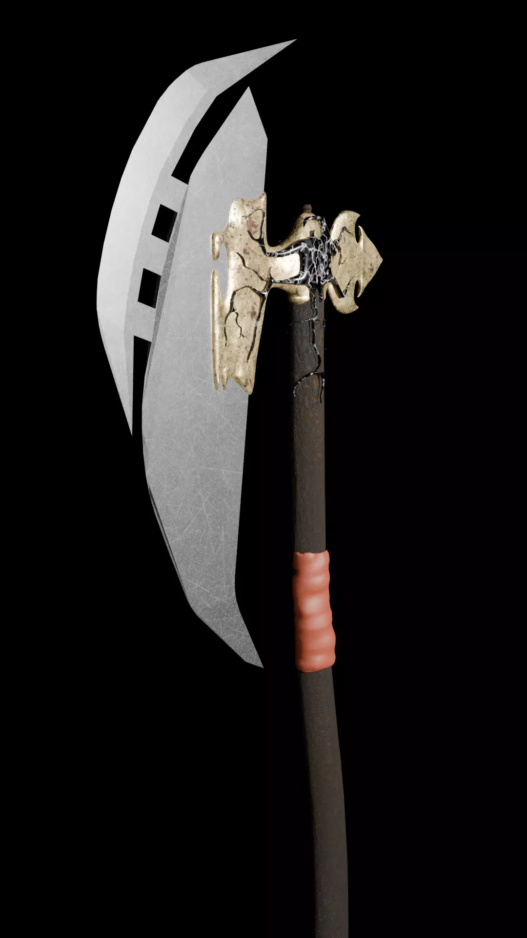Forged in Blender with cinematic precision, Crimson Oath is a stylized fantasy war axe designed for storytelling-rich worlds. The double-edged blade features angular cutouts and battle-worn textures, hinting at countless wars and sacred duels. Ornate metallic connectors and wrapped grips in crimson and black evoke emotional depth—memory tokens, clan markings, or remnants of a fallen comrade.Perfect for use in fantasy games, concept art, or cinematic sequences, this asset balances technical realism with mythic resonance. Every crack, wrap, and curve is sculpted to serve the story.