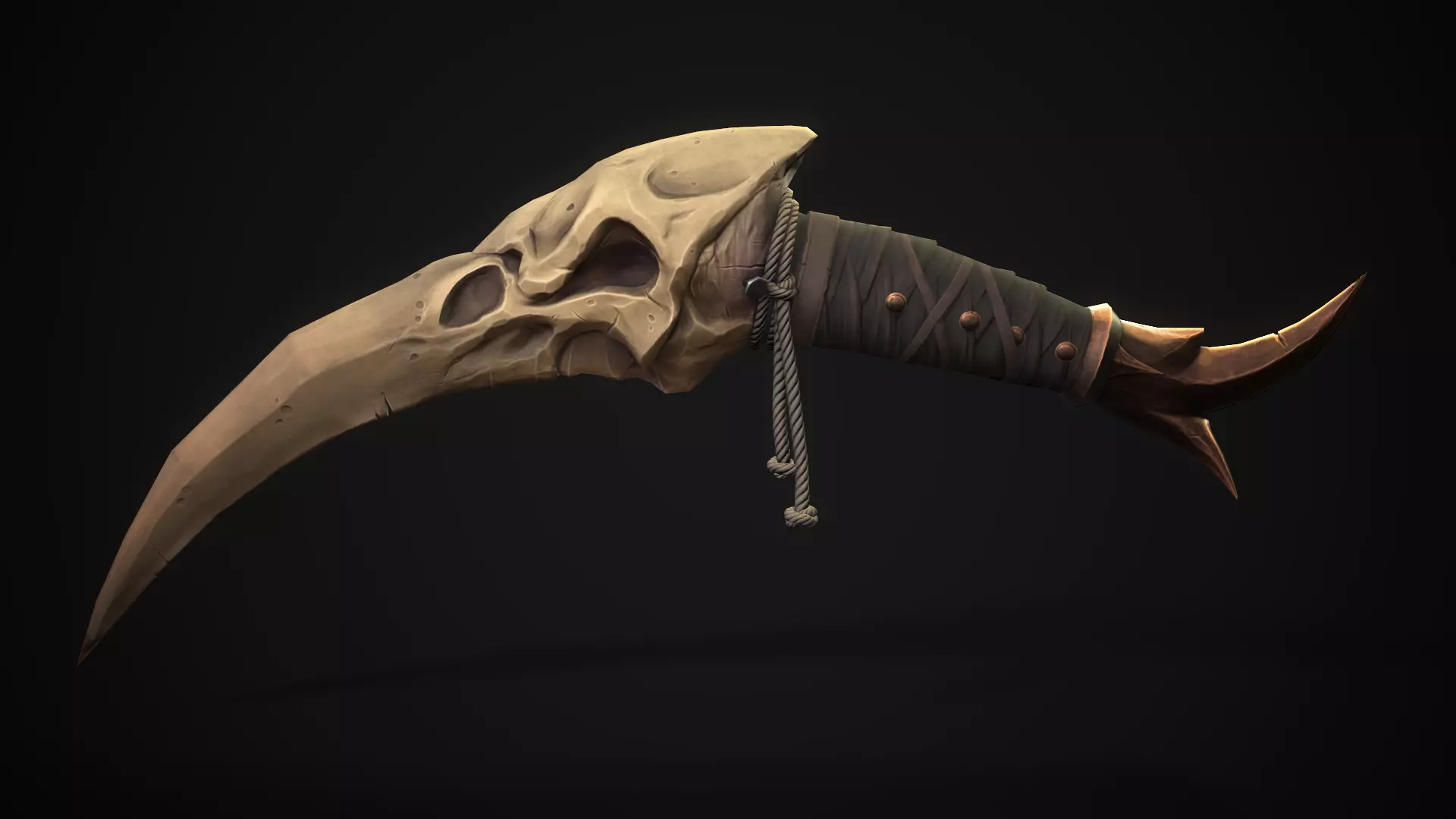 A fantasy, semi stylized depiction of a crow skull dagger. It was inspired by plague doctors, witchcraft and bloodborne game. An idea that I got when I was modeling the crow skull and wanted to explore a concept of turning it's beak into a blade, and furthering it with a dagger.