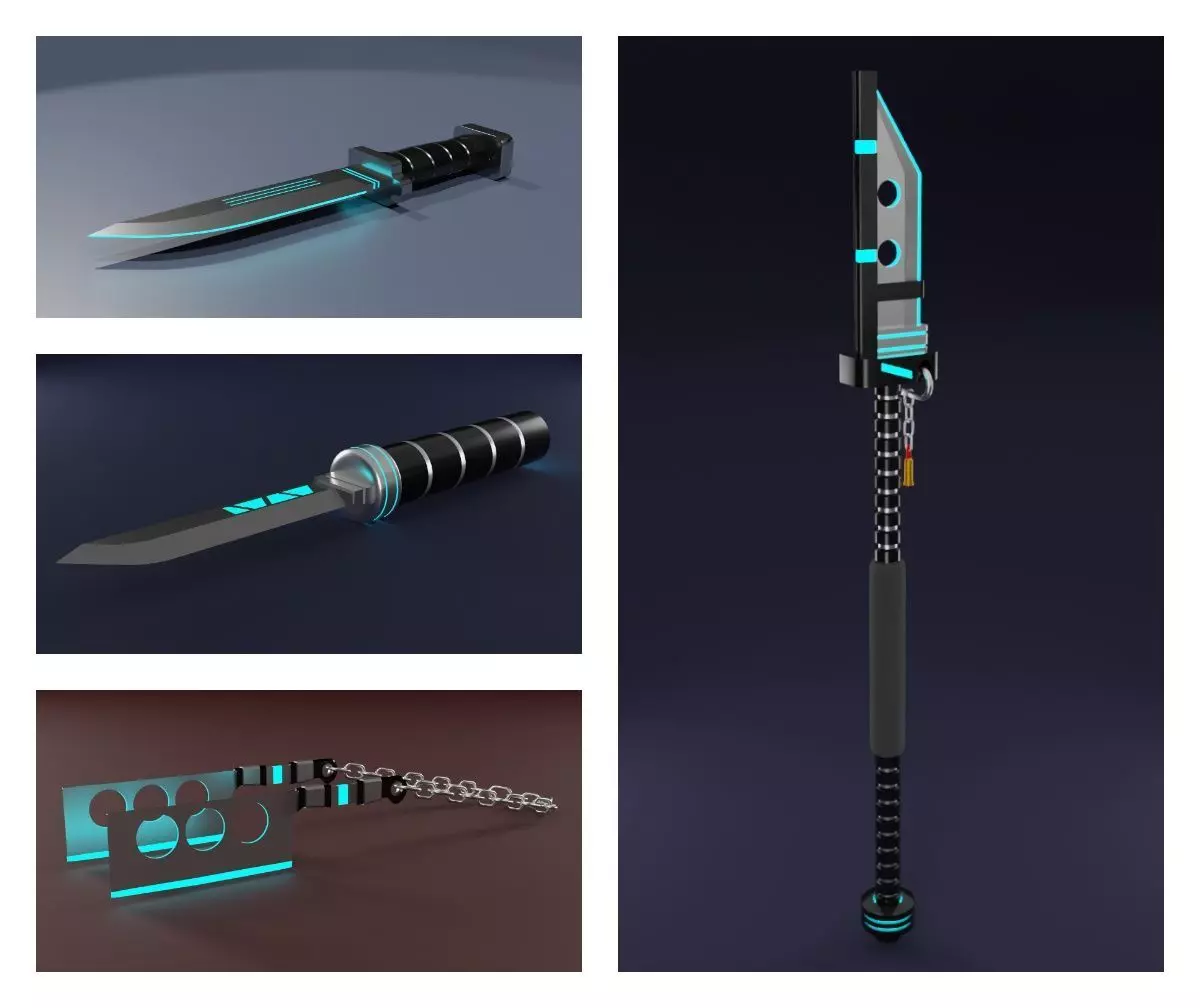 A set of models of bladed weapons in the style of cyberpunk and science fiction.