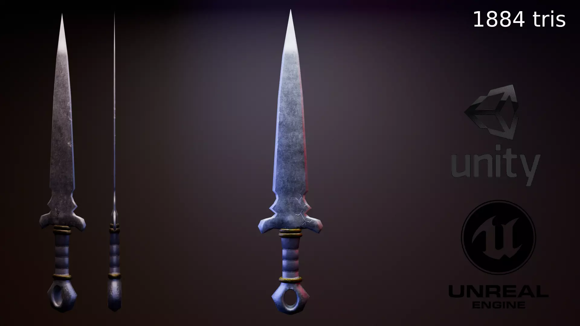 Medieval Dagger Low-poly Game ready Dagger 3D Asset