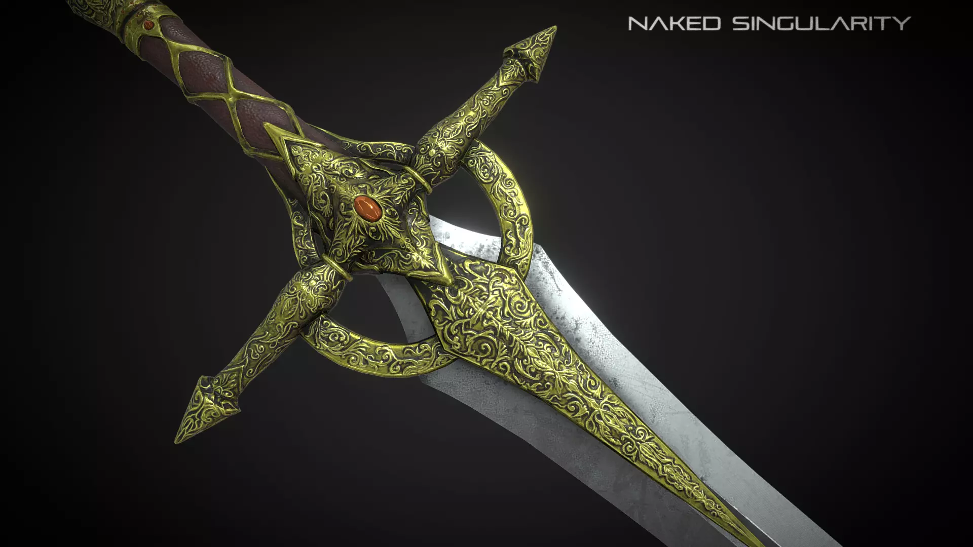 Dark fantasy golden sword - PBR - Game ready --- Low-poly 3D model