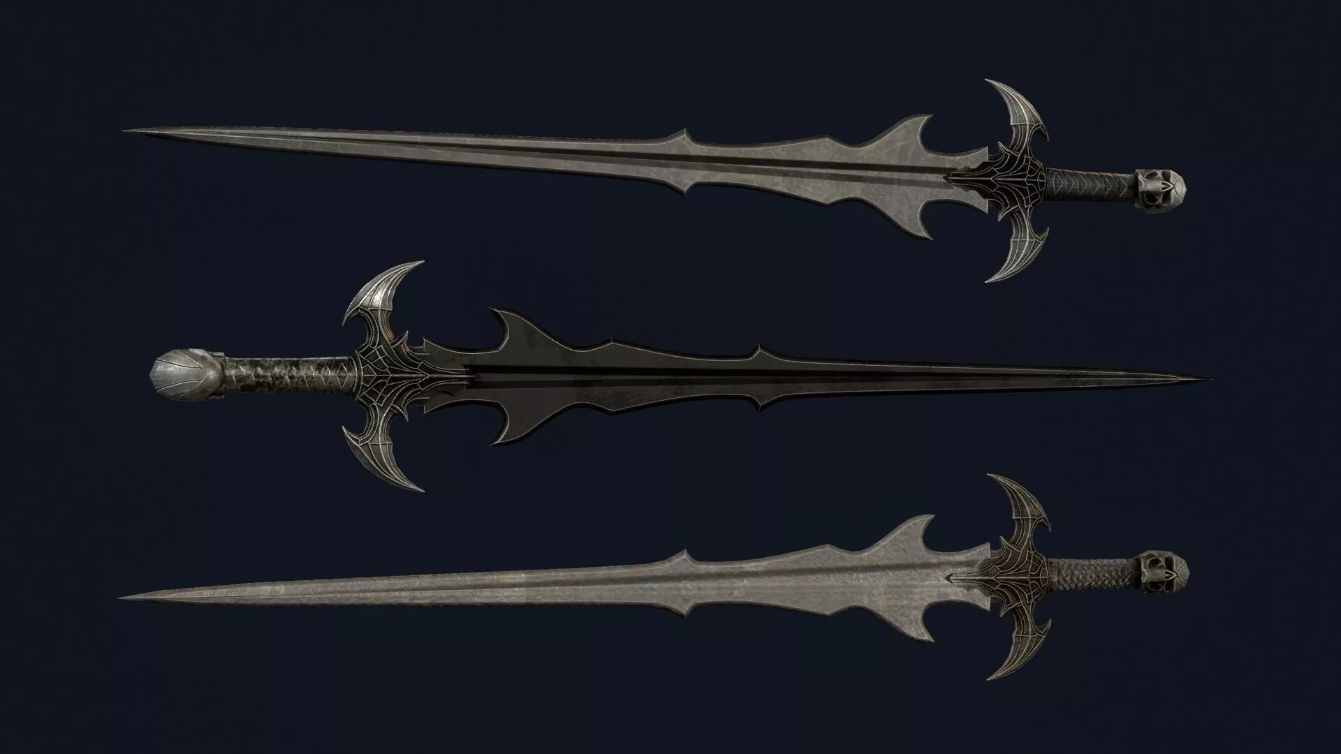 The design features a long, sharp blade with an aggressive profile and a demonic crossguard with curved spikes, creating a striking and recognizable silhouette. Its proportions emphasize reach and dominance, making it perfect for final bosses, elite enemies, and legendary characters.