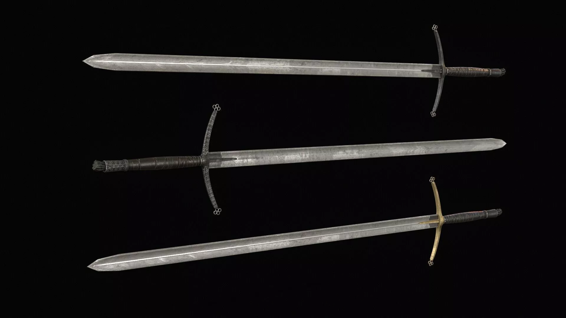 The design features a long blade with a large crossguard, emphasizing its knightly origin while adding a brutal and ominous presence. The model includes PBR textures and is prepared for easy integration into game engines. The grip is positioned at world zero for convenient placement and attachment, and the model is oriented along the Z axis. The asset includes 2K and 4K textures, making it suitable for optimized real-time use as well as more detailed cinematic scenes.