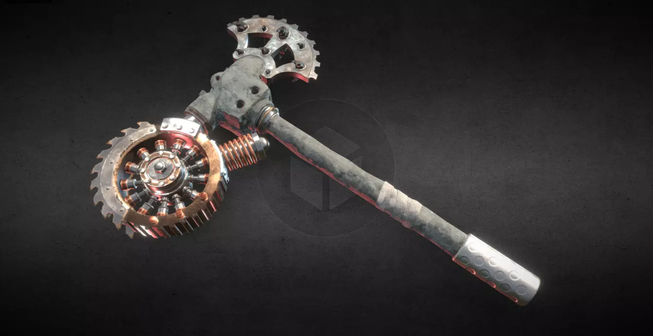 Heavy two-handed post-apocalyptic industrial mallet, with smelting grafts and functional gears to bust zombies.