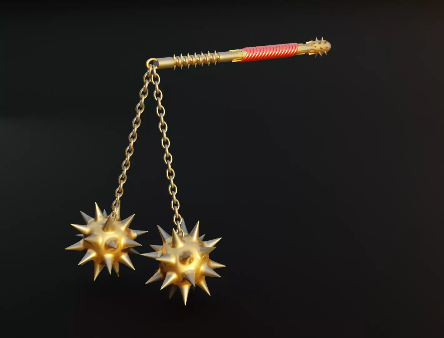 I am glad to present to you a 3D model of a weapon called a double combat flail, it consists of a handle with spikes, wrapped around it so that it can be held more conveniently and two balls with spikes on a chain, suitable for any ideas, especially for games, also suitable for your projects, animations, advertising, videos and so on.
