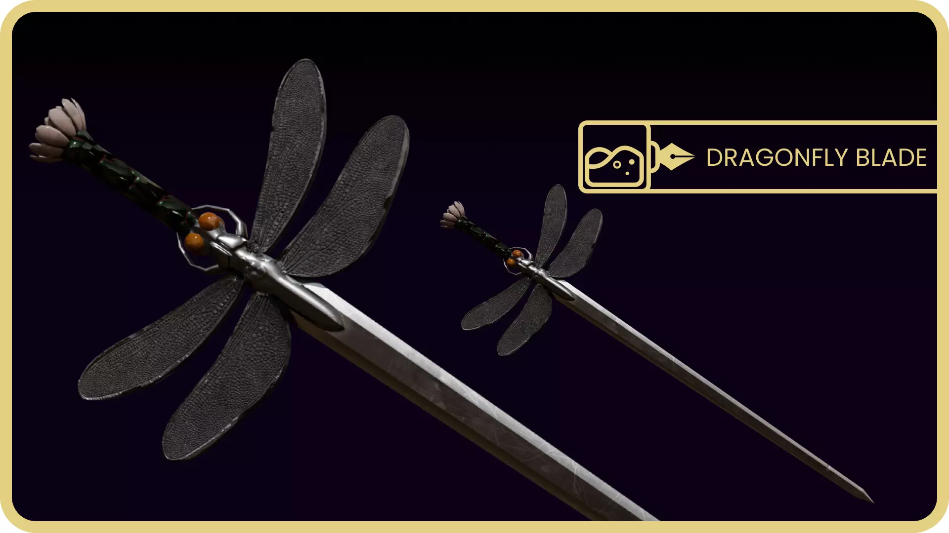 Dragonfly Sword | A sleek and agile medieval fantasy one-handed sword, inspired by the elegance and precision of a dragonfly in flight. Crafted with attention to detail and enhanced with PBR textures for realistic visuals. Ideal for fantasy games, animations, or collectible asset libraries.