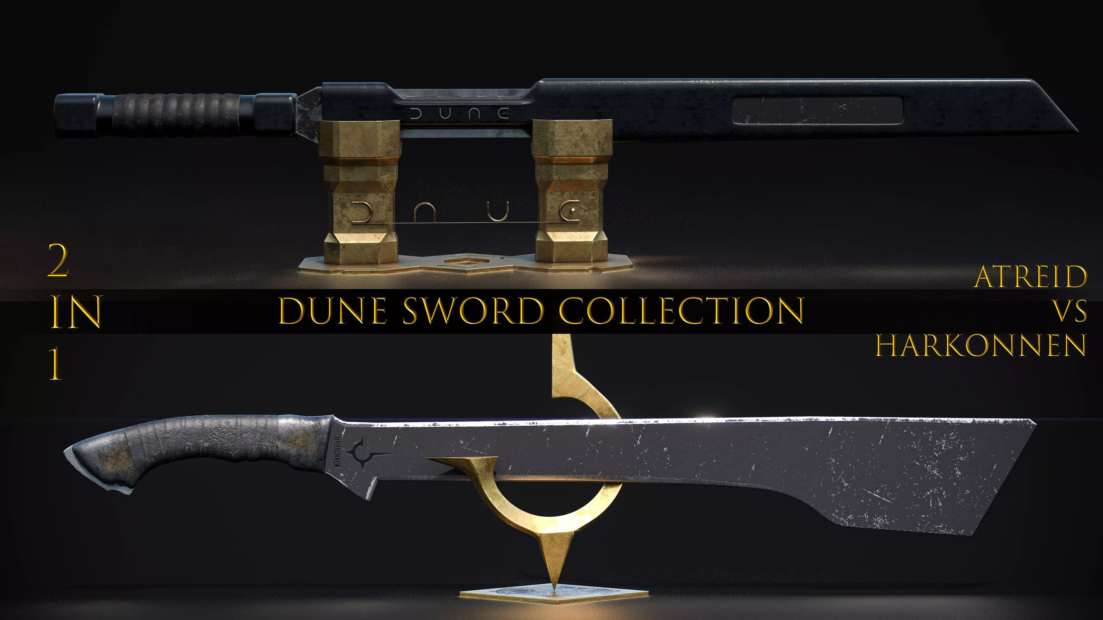 Dune is a 2021 American epic science fiction film directed by Denis Villeneuve and written by Villeneuve, Jon Spaihts, and Eric Roth. It is the first of a planned two-part adaptation of the 1965 novel by Frank Herbert, primarily covering the first half of the book. House Harkonnen, enemy to House Atreides, and former steward of Arrakis.DUNE Sword Collection 2 in 1Name: DUNE Sword of HARKONNEN'sUnits: Metric (millimeters)Dimension: 1636 x 636 x 317Polys: 45 603Verts: 46 081Mtl: PBRUnwrap: YesModel Parts: 6Formats: 3Ds Max 2016, FBX, OBJ