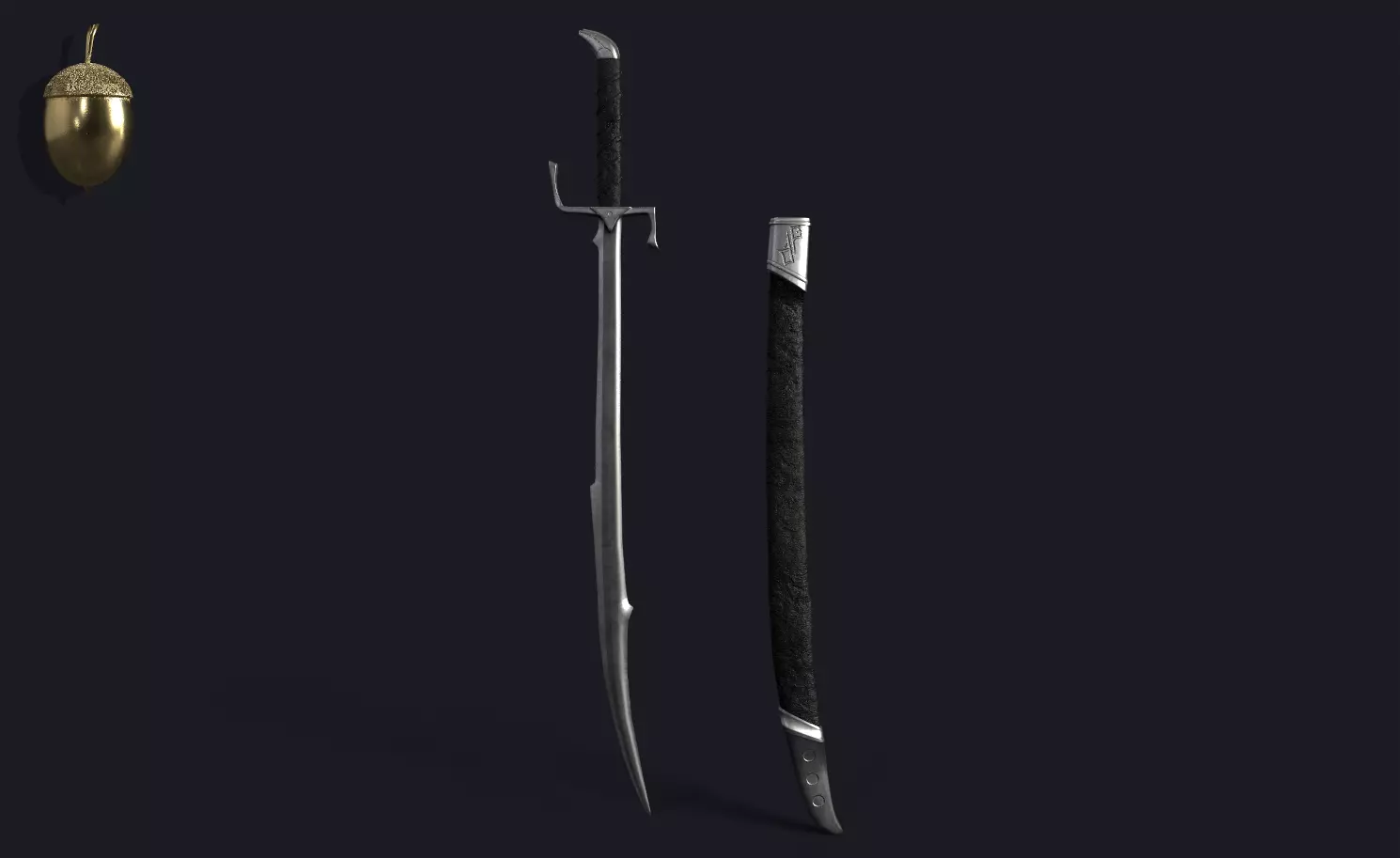 An elegant, fantasy-themed scimitar/saber design, UV-unwrapped and PBR-textured, 2048 maps.