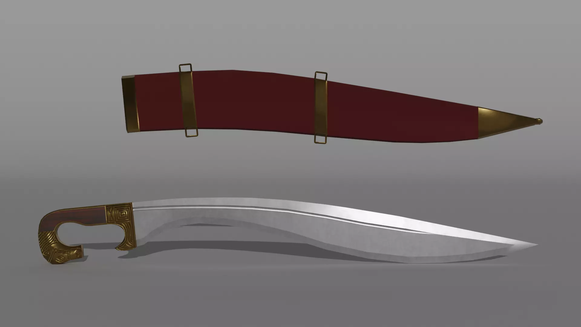 A low poly Iberian falcata sword and scabbard. Each model comes with 2K resolution PBR textures with clean and rusted metal variants. The sword model also has a bronze blade variant. The Blender file has materials set up with mixRGB nodes to switch between the different texture variants. Textures in the blend file are referenced via relative paths, so extract the textures from the Textures.zip folder and place them in the same folder as the blend file to automatically link them.