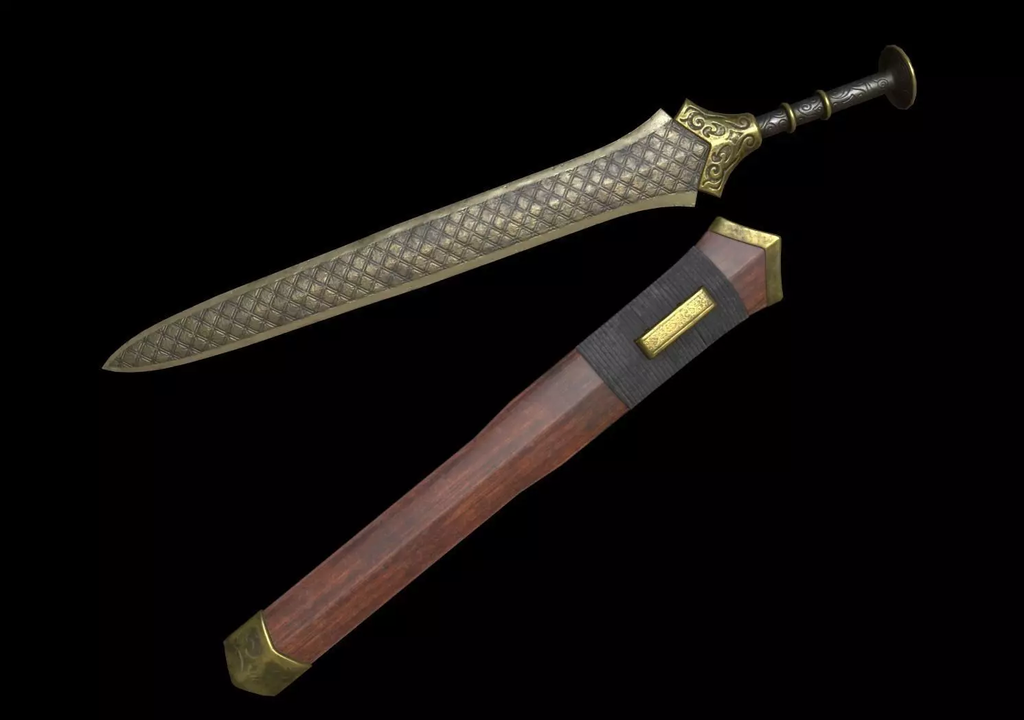 This fantasy sword is modeled based on ancient chinese bronze sword of Spring and Autumn Period.