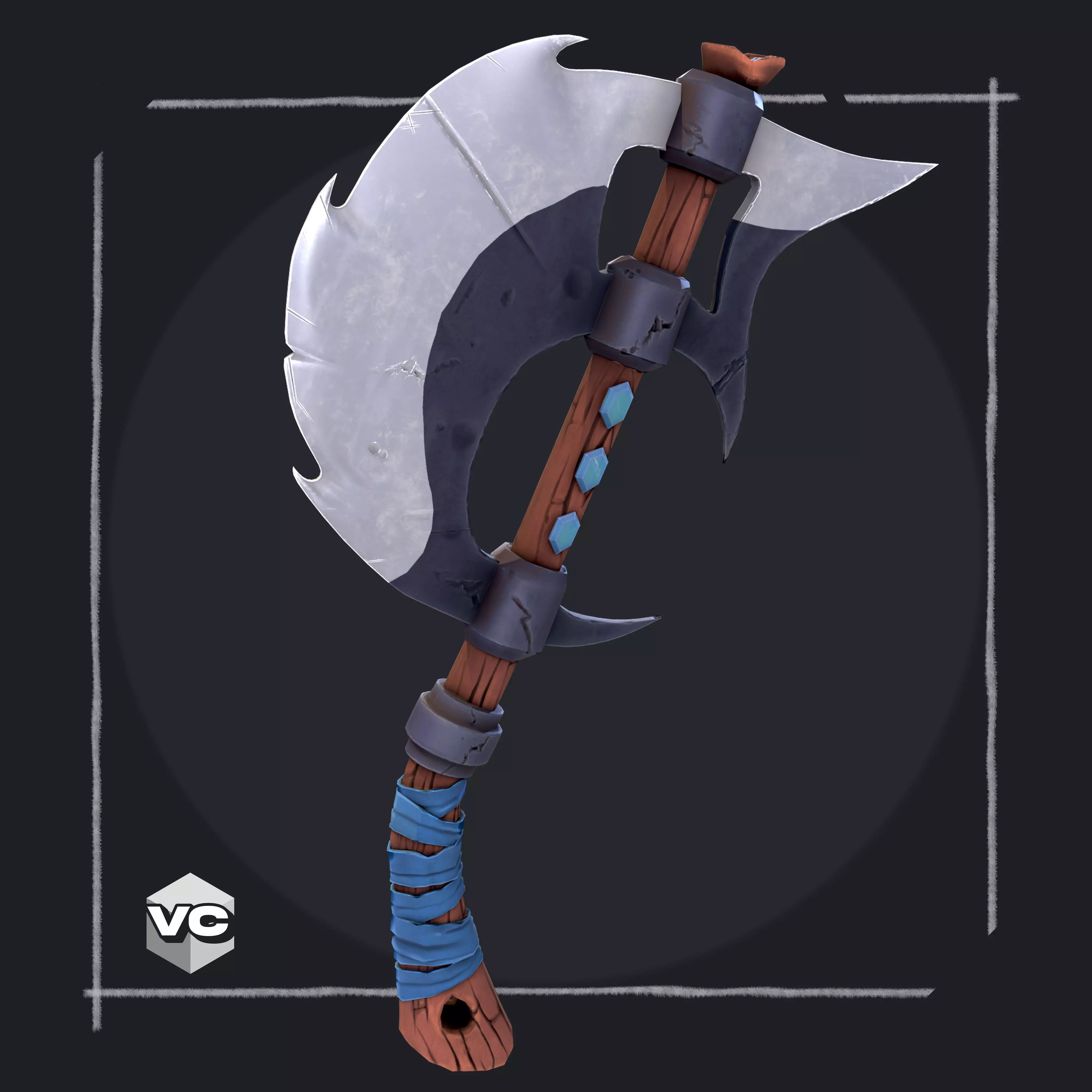 I'm in love with the details on the cutting edge of this stylized axe, just looks so right in this style.Plus the texture and the colors palette, they work together so well. Hope you like it !