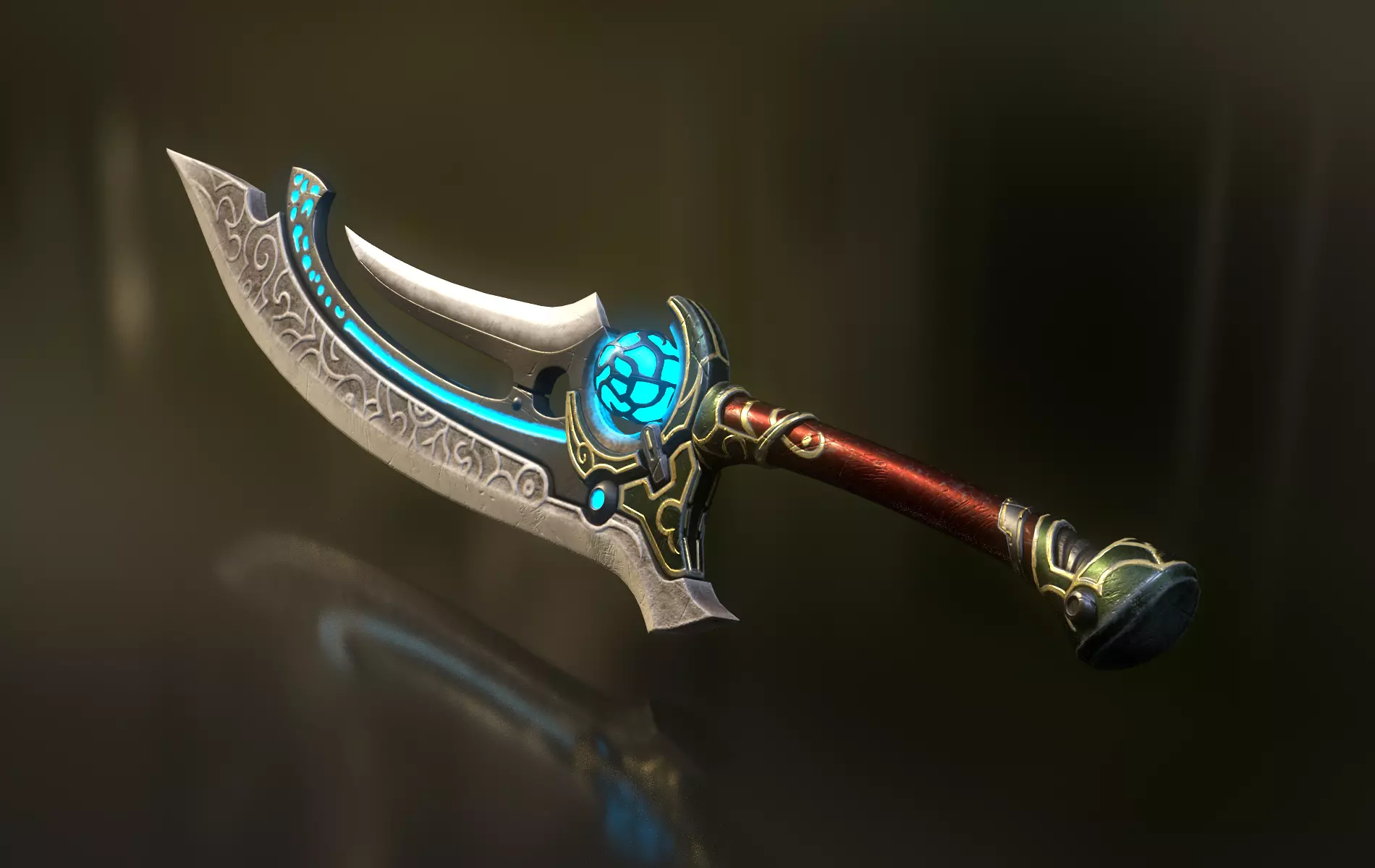 Low poly AAA Game ready Fantasy Sword. Textures included: Albedo (Base Color), Normal, AO, Roughness, Metalic and Emissive Maps. Non-square texture maps - 4096 x 2048