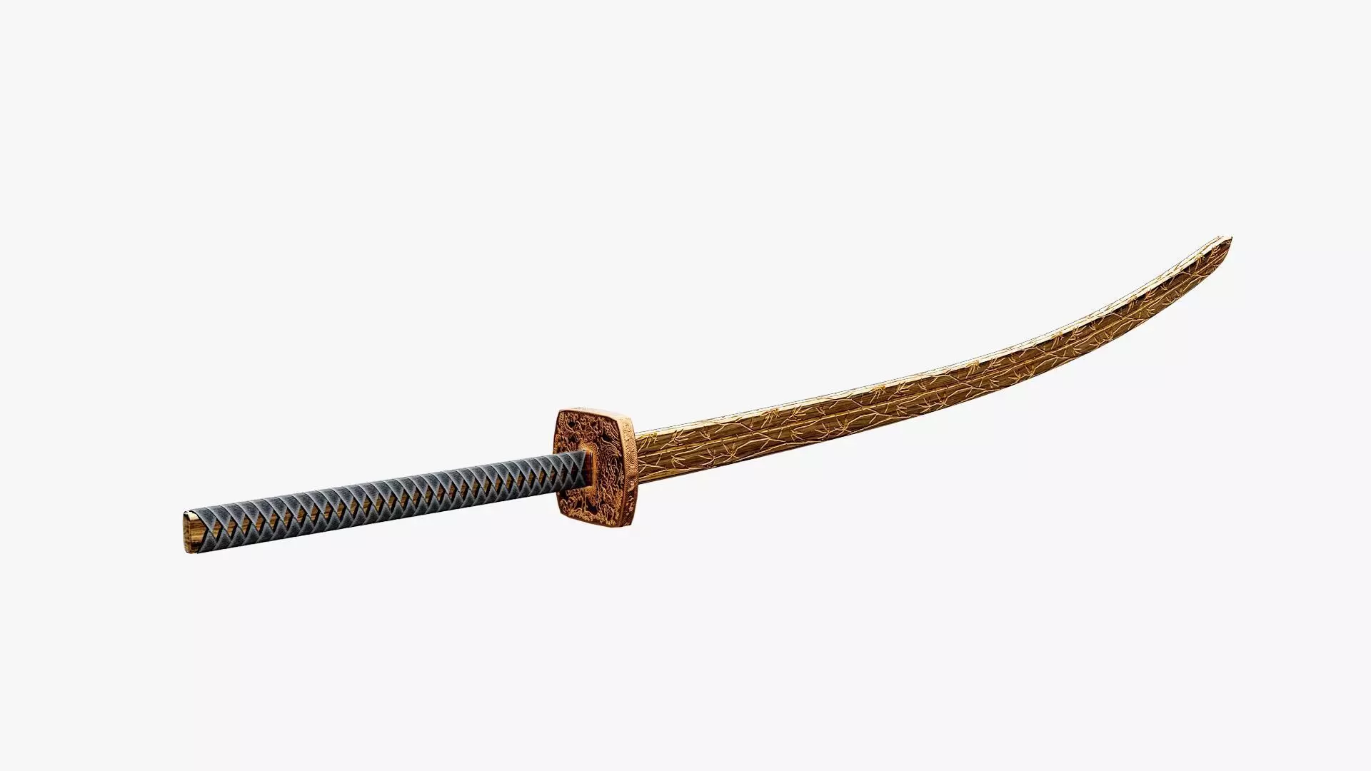 Realistic 3D Model of Golden Katana Created by Paradoox Studio.