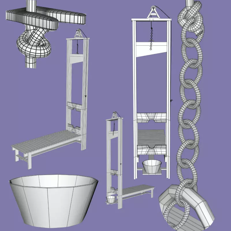 Product Description : A Guillotine in FBX and Object formats. Two object files : 1. The Blade is Up. 2. The Blade is down and bloody. Two Textures for the Blade objects : 1.BladeBloody.jpg 2.BladeNoBlood.jpg One Texture for the other objects. GuillotineFrame.jpg This product is for use in any software that can open: Wavefront object files.(.obj) and/or FBX files (.fbx) UV mapped (non-overlapping)All Quads and Tris Software Compatibility : This product is for use in any software that can open: Wavefront object files.(.obj) and/or FBX files (.fbx)