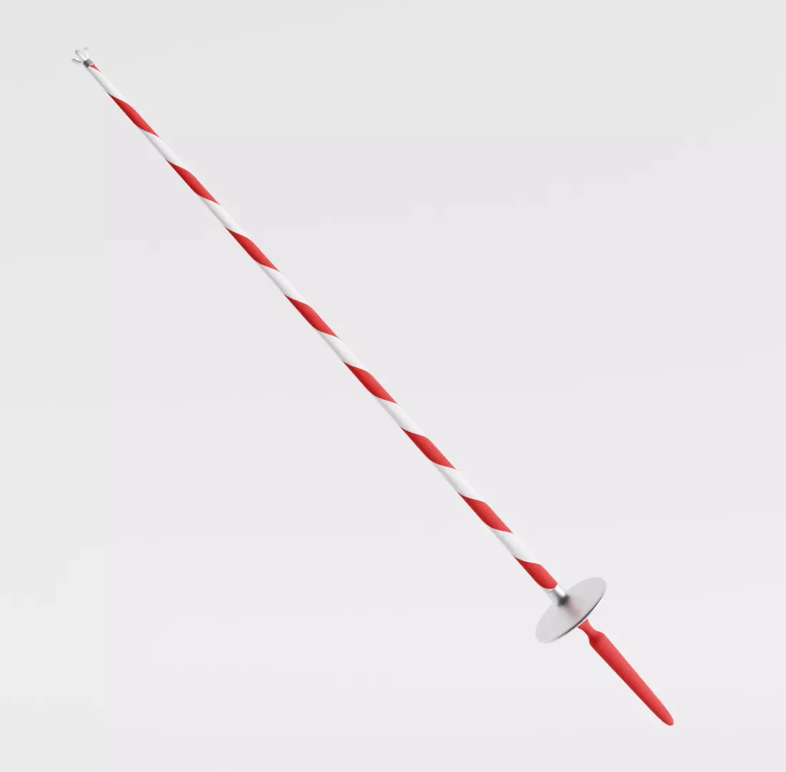 The attachment on top (6178 vertices) can easily be removed, as it is not connected to the mesh of the actual lance (3810 vertices) in Edit Mode. There are two versions of the lance textures: one completely clean and one with decent marks/chipping.