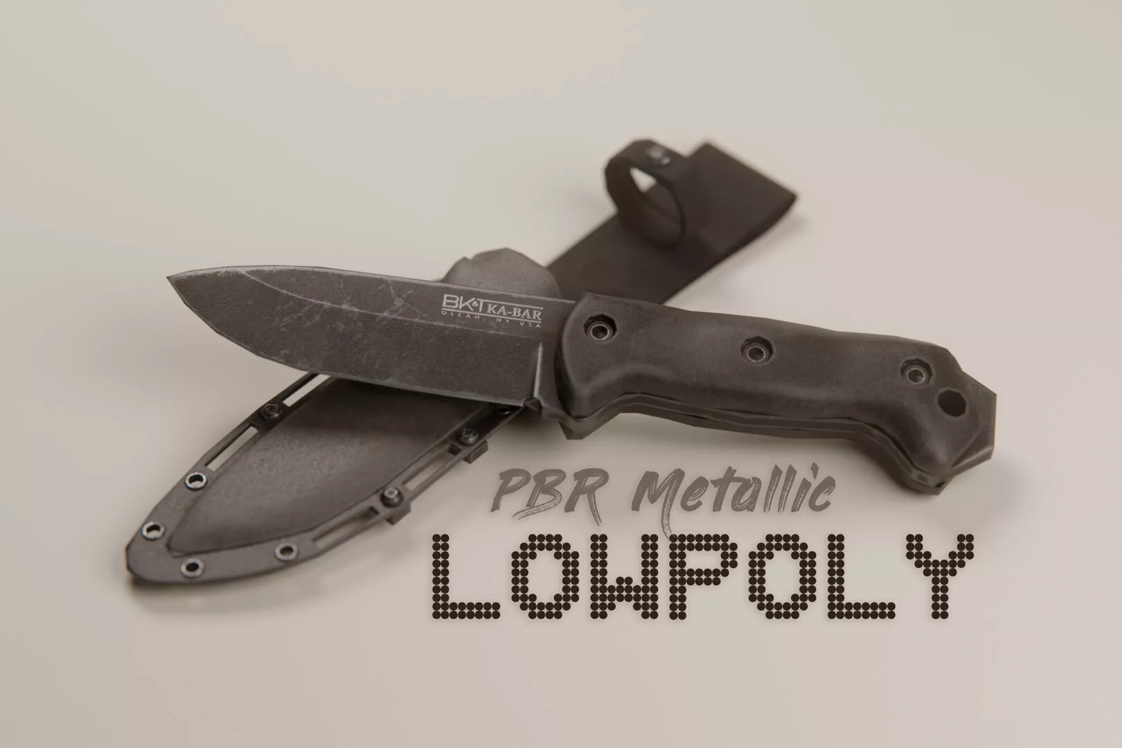 A lowpoly Ka-Bar BK-2 hunting knife with a polymer grip and a polymer sheath.