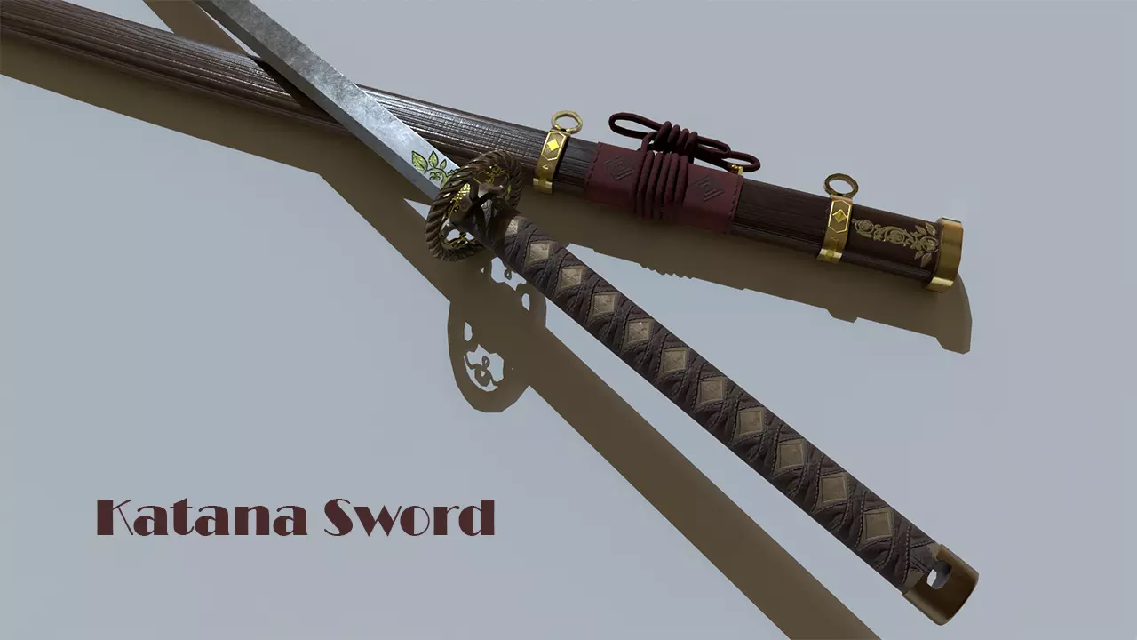 3D low poly model of a Katana, with a resolution of 4k and 2k PBR textures: