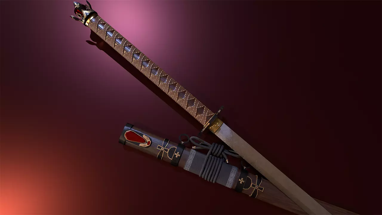 3D low poly model of a Katana - Black Cross, with a resolution of 4k and PBR textures: