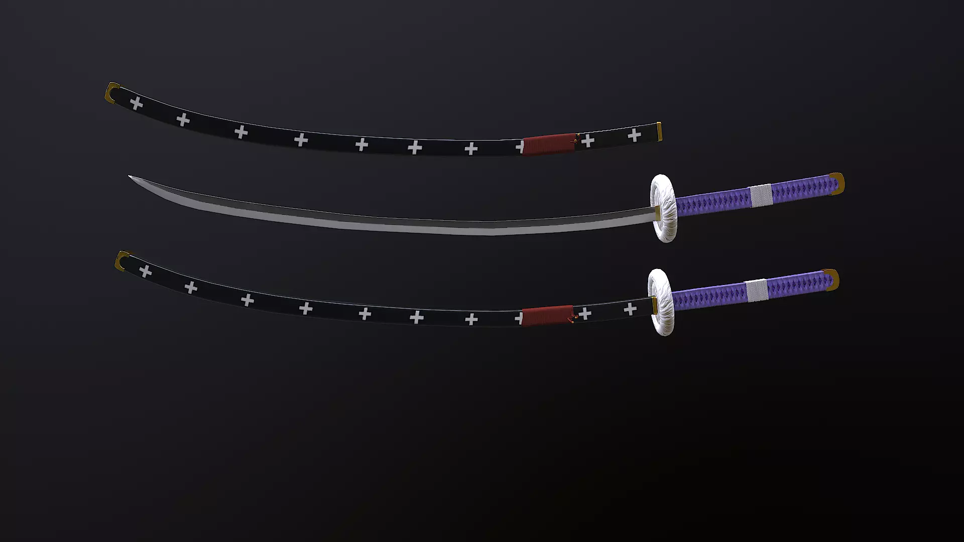 Trafalgar law katana from onepiece create with blender and substance painter.Real dimensions from the anime .Triangles : 25.9kVertices : 12.6k