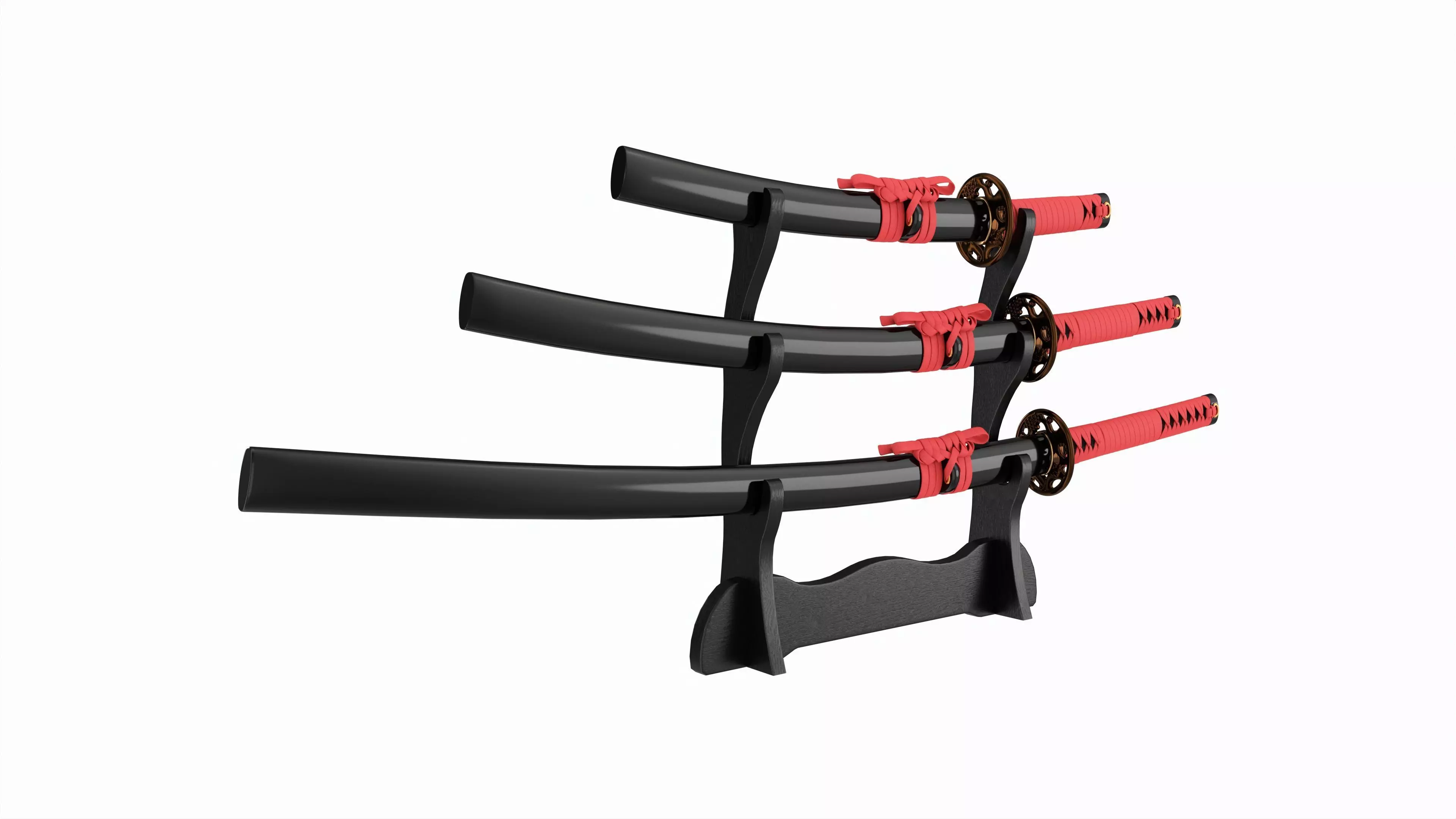 Katana Wakizashi Tanto Set on a Stand 3D model