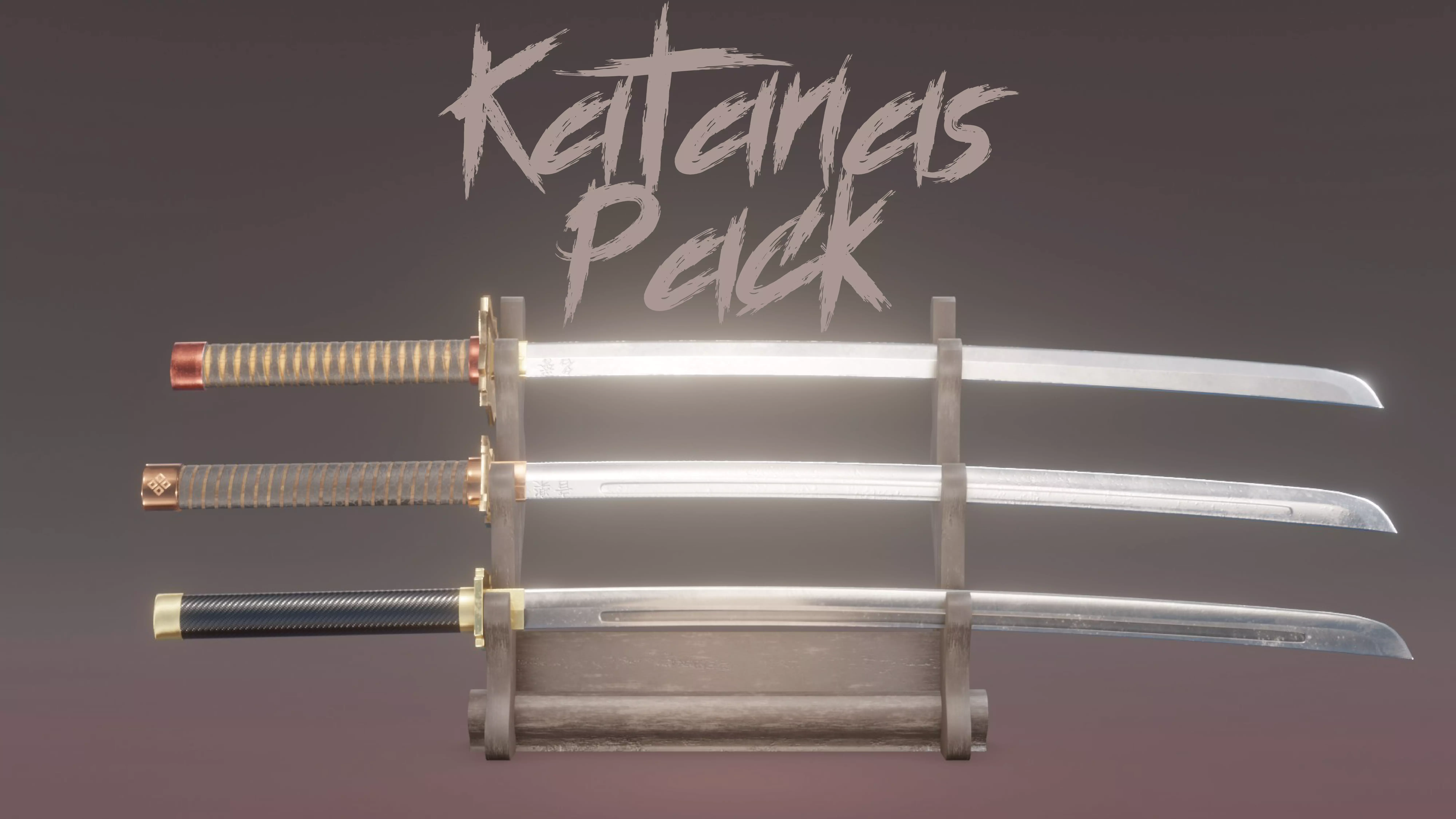 Katanas Pack consists of 3 katanas and 3 sayas made in a blender and textured in a substance painter. Each katana and saya has UV mapping.