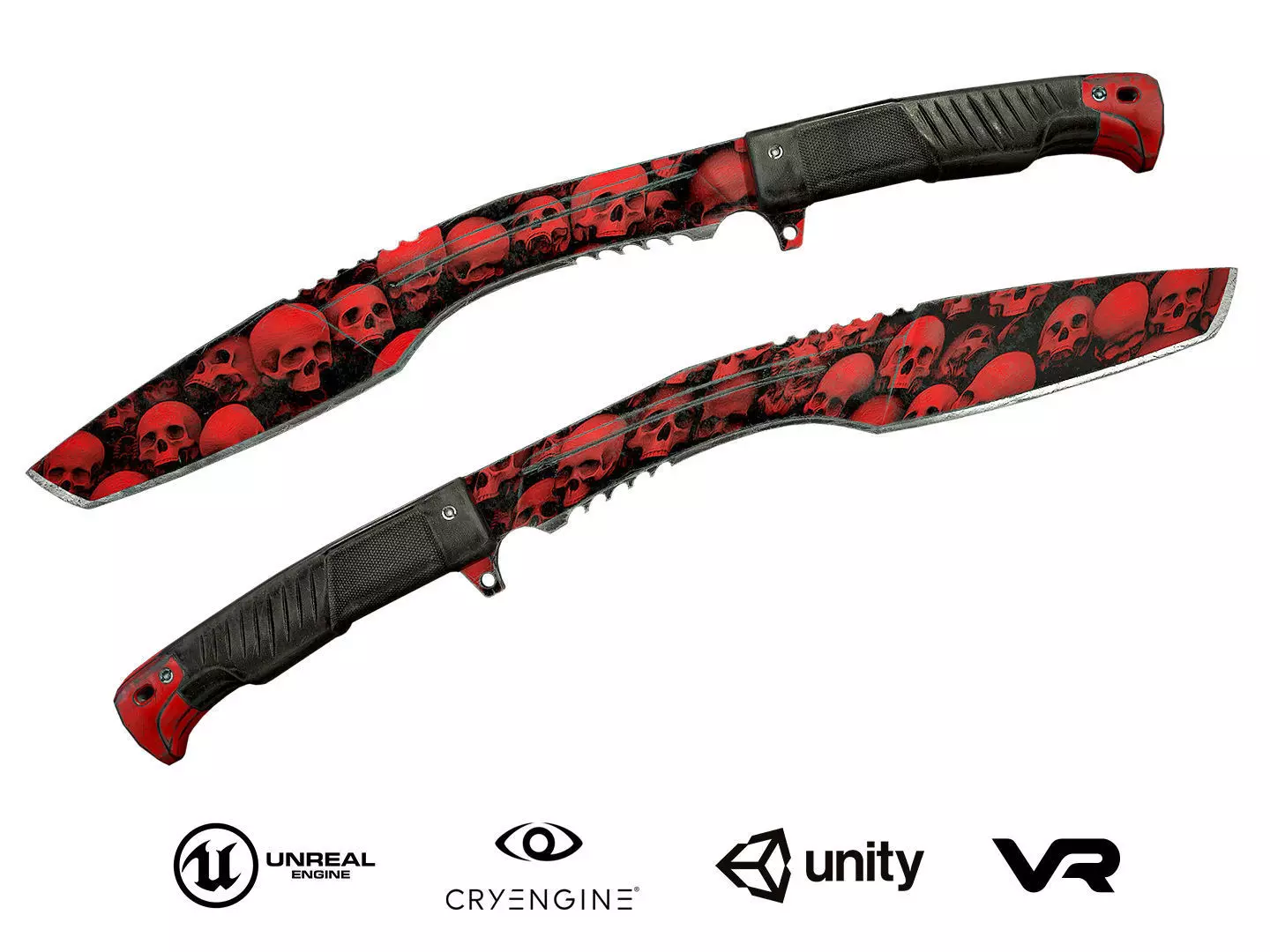 Game ready mesh and textures for the Knife Kukri-Red Skulls or Khukuri — Model and Textures.