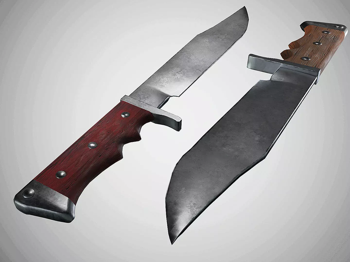 3D model of a survival hunting knife with a sharp stainless steel blade and a wooden handle. Designed with clean topology and a low count, it’s optimized for games and interactive scenes, renders. Ideal as a prop for survival, adventure, or military-themed projects, this model delivers both functionality and realistic detail.