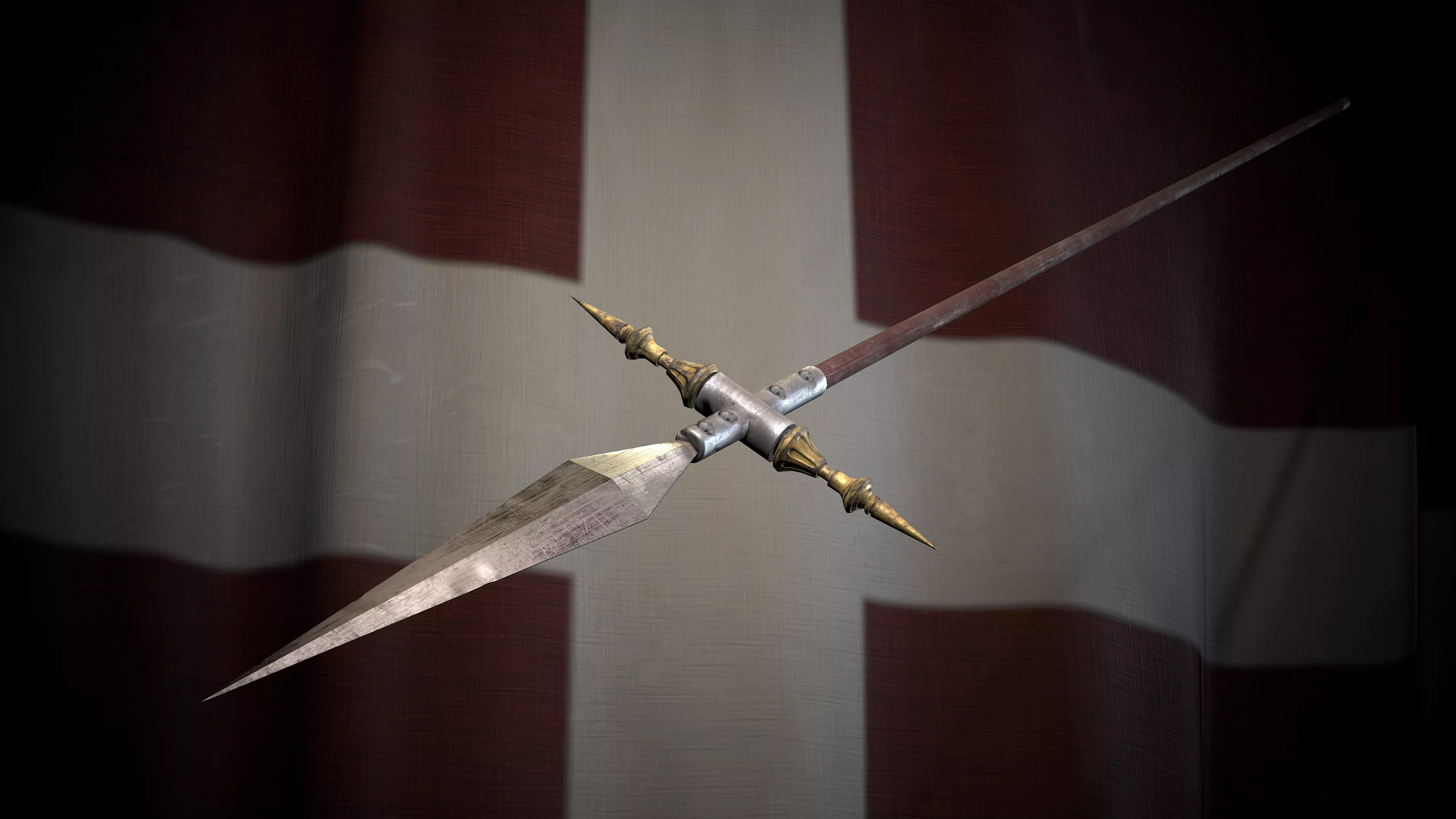 Game ready model of medieval long battle spear. Templar-guards usually use such spears, also its fine for battles in line. This is high quality model with detailed textures and various small surface details such as damage, the texture of sharpened metal, wood fibers, etc.